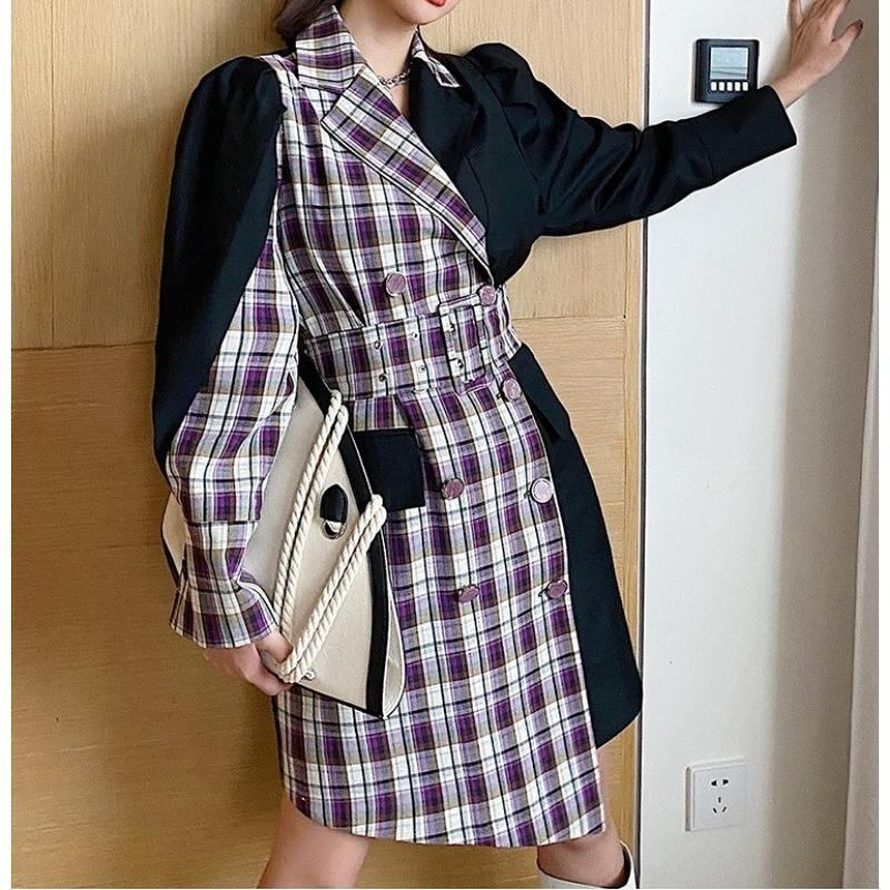 girly chic asymmetric purple plaid dress 0722