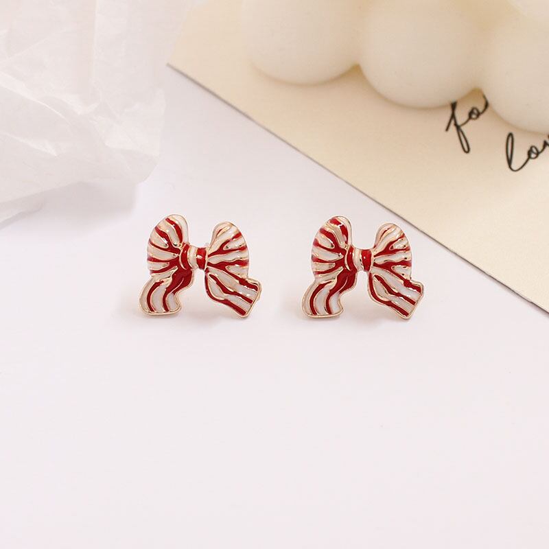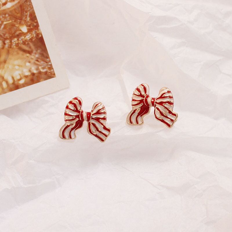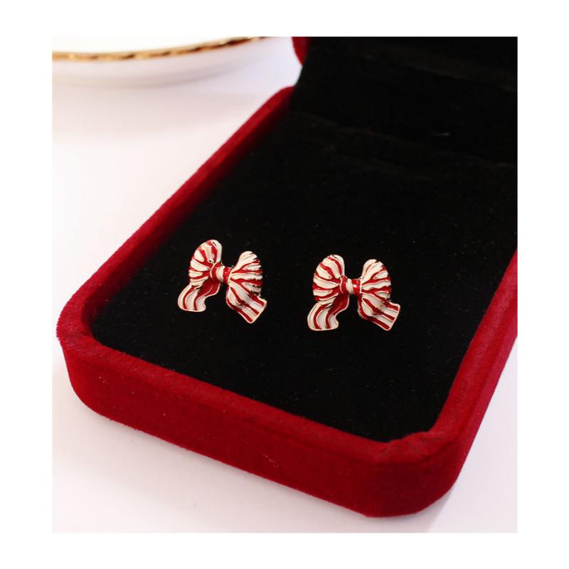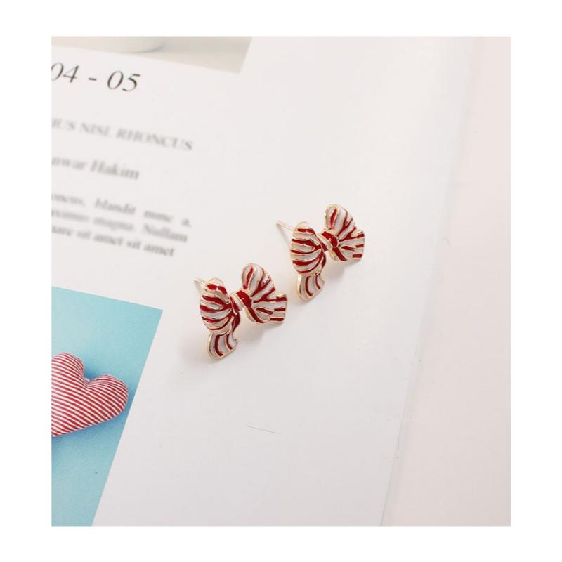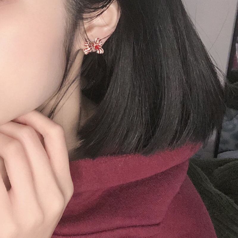 girly sweet striped red ribbon small earrings (ピアス&イヤリング) 0770