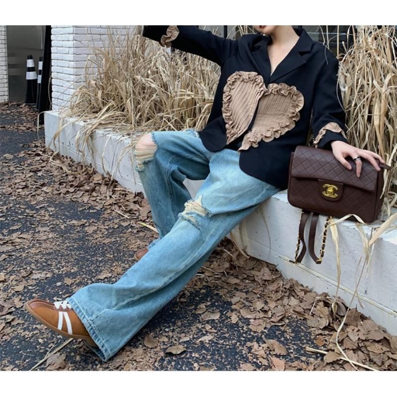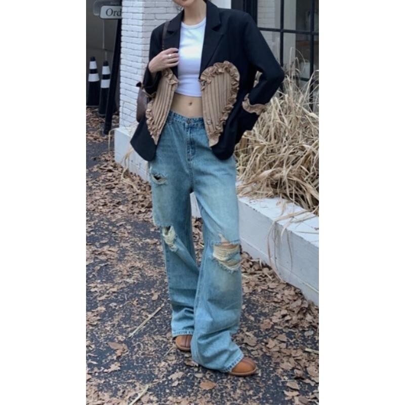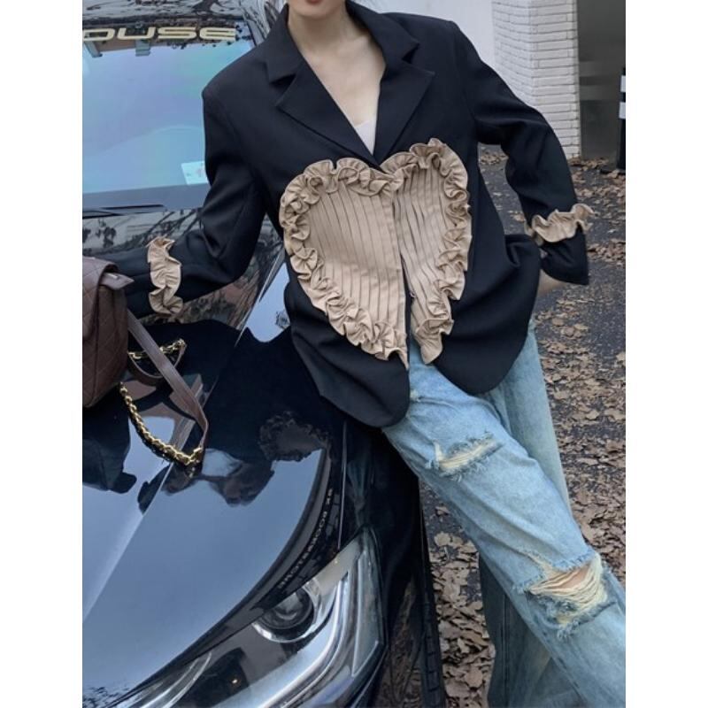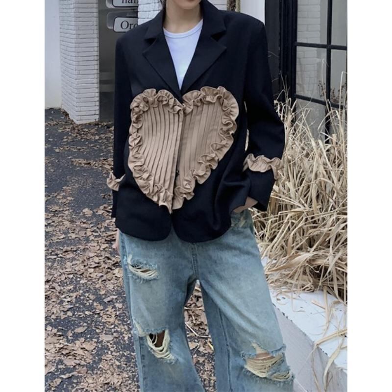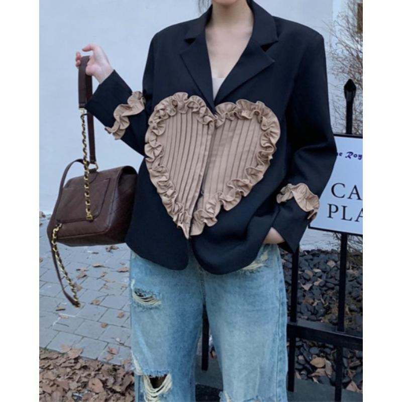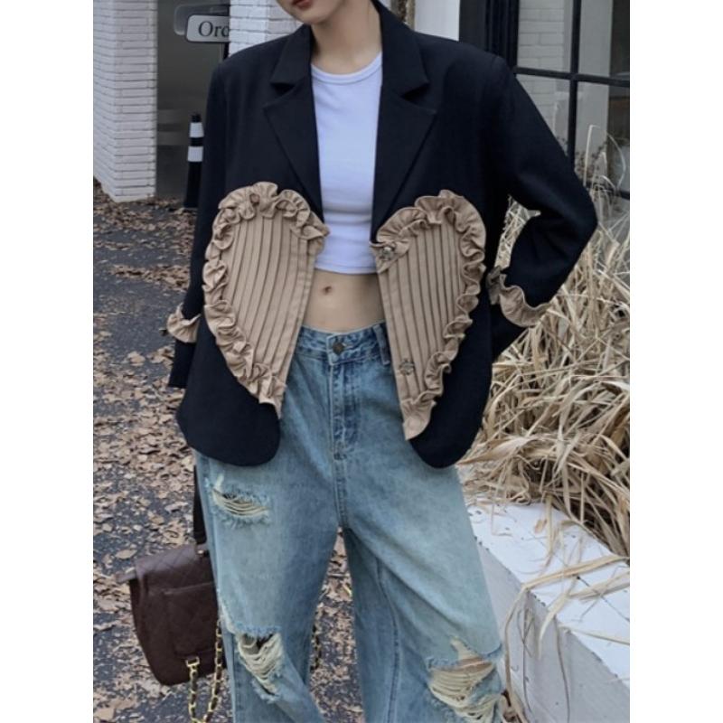 retro girly ruffle stitching pleated heart suit jacket 0795