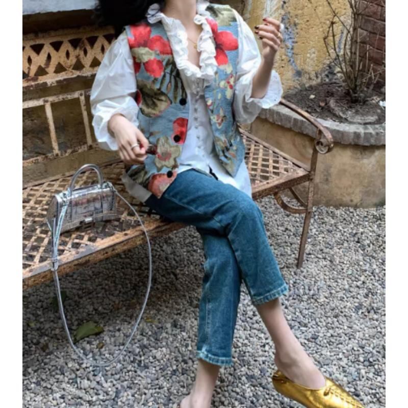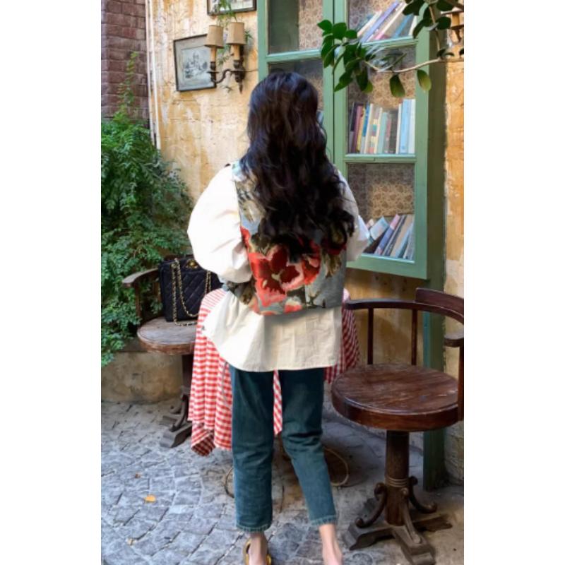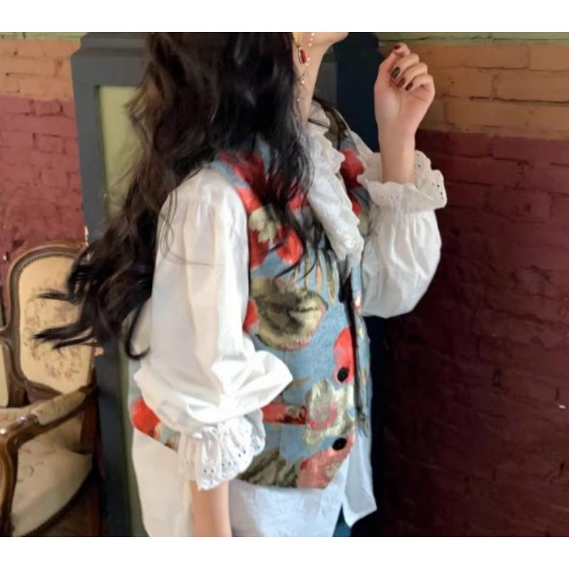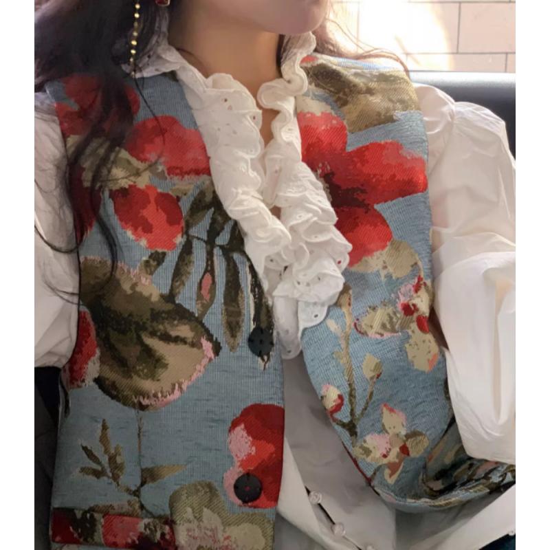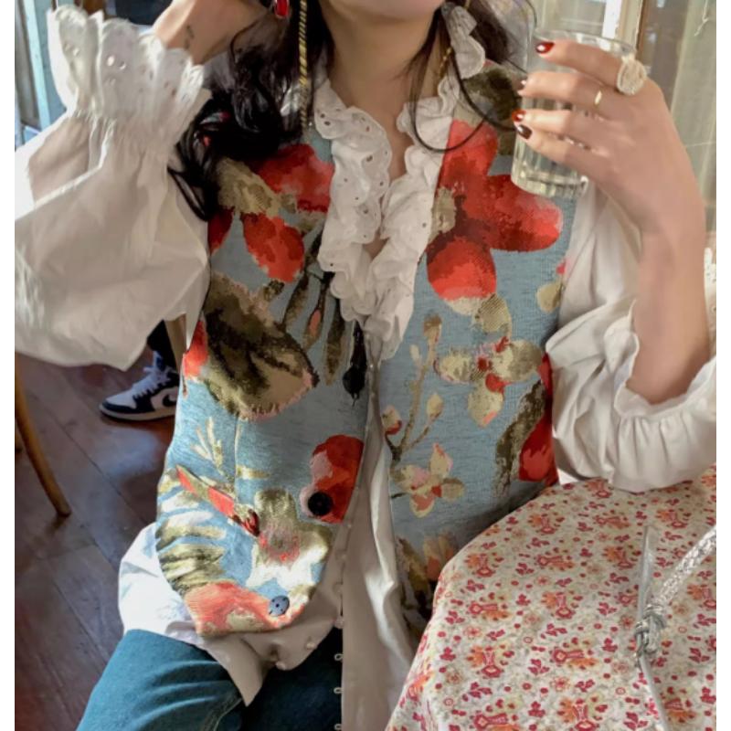 油絵風のおしゃれで華やかな花柄が素敵なベスト✨