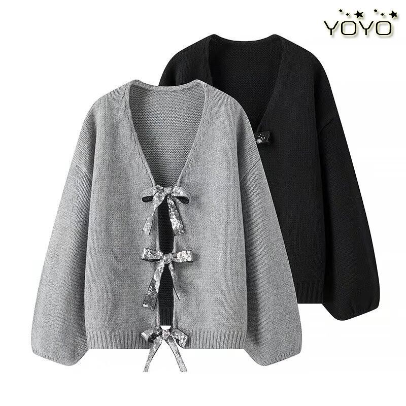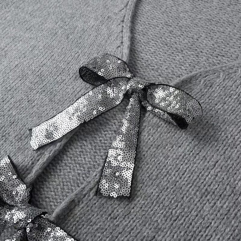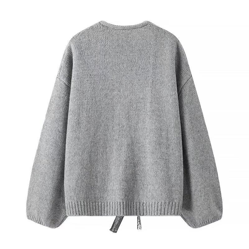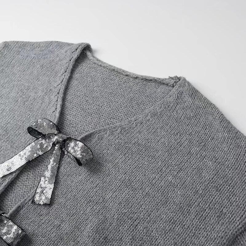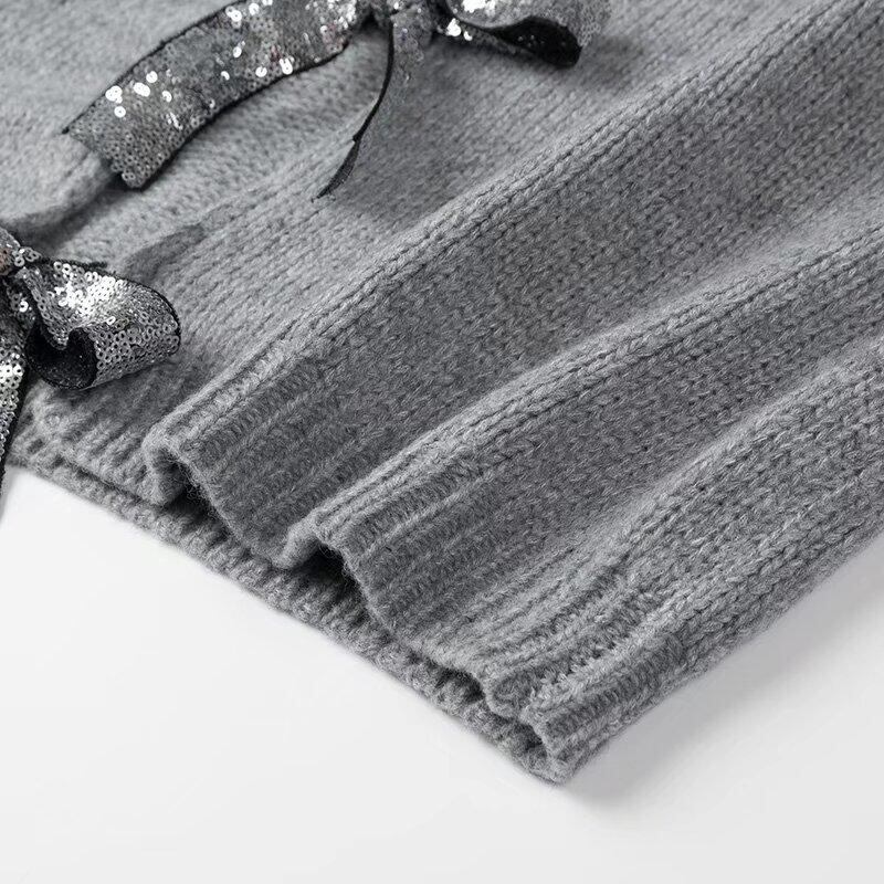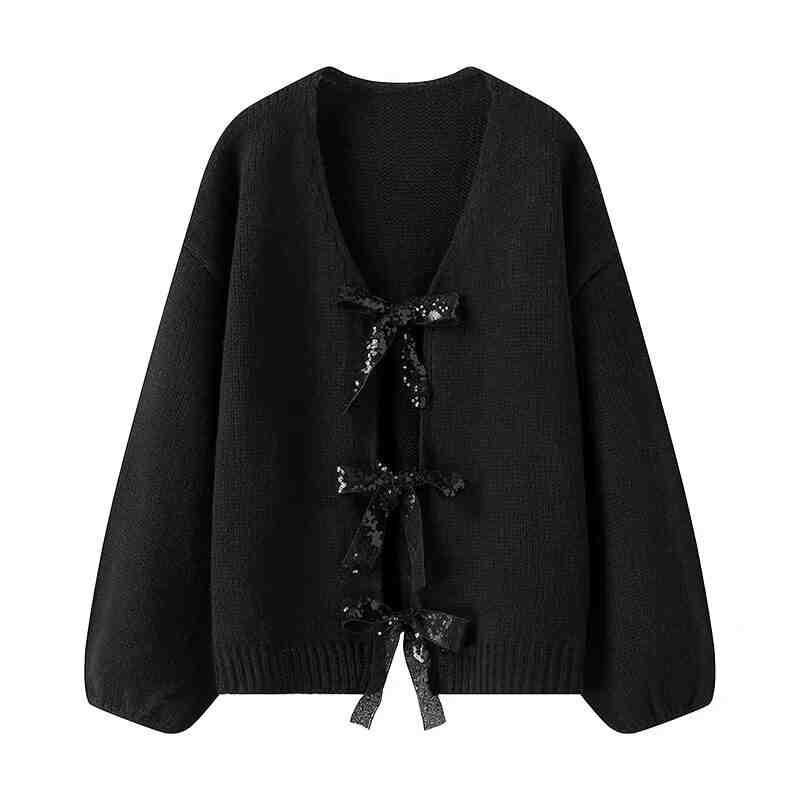 sequined ribbon decoration knitted sweater cardigan 0688