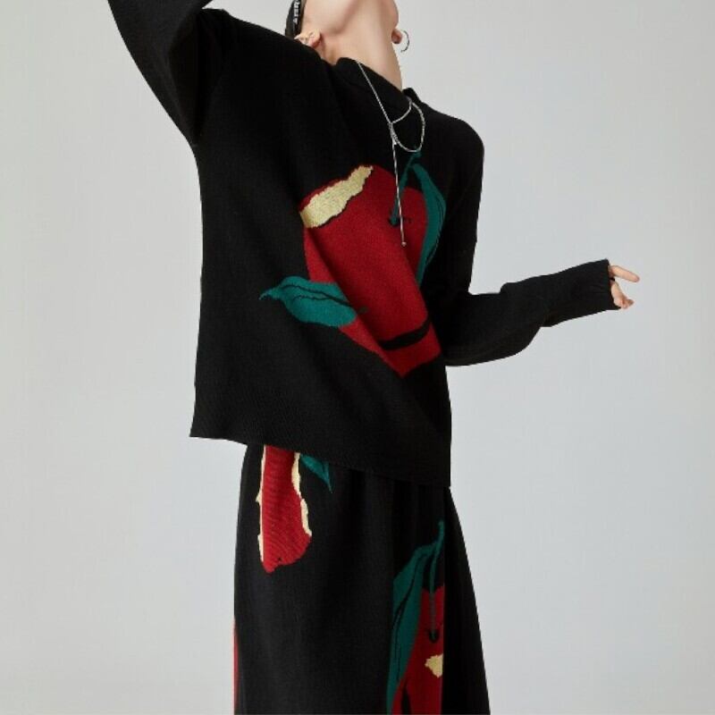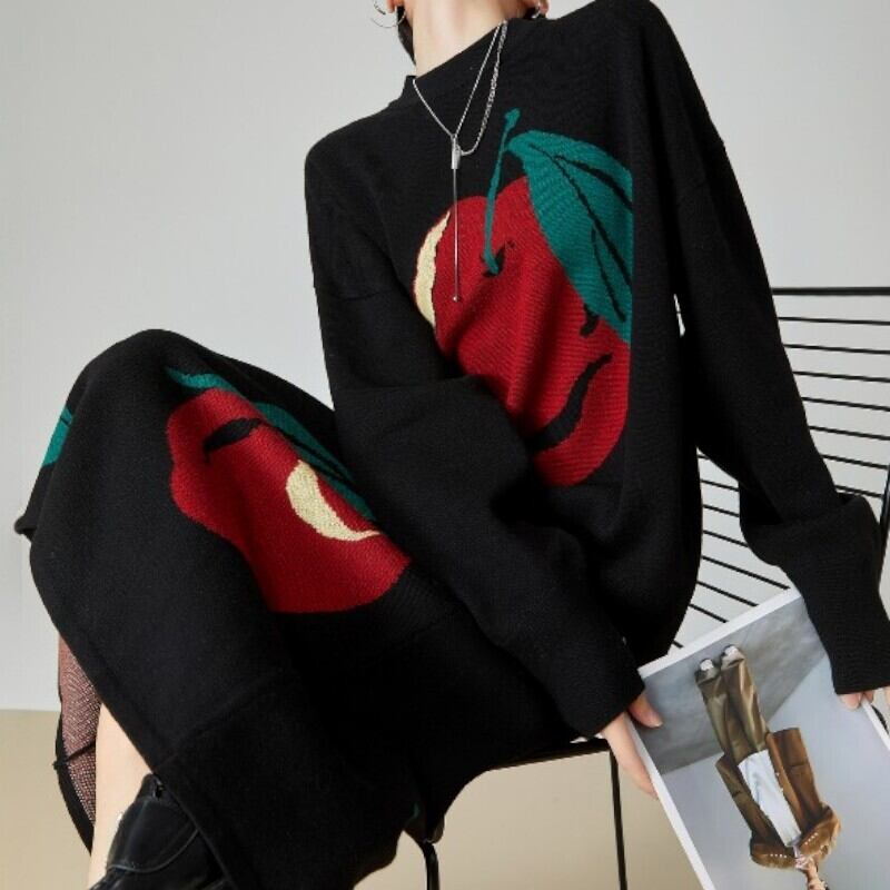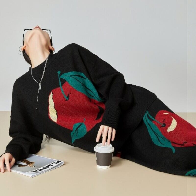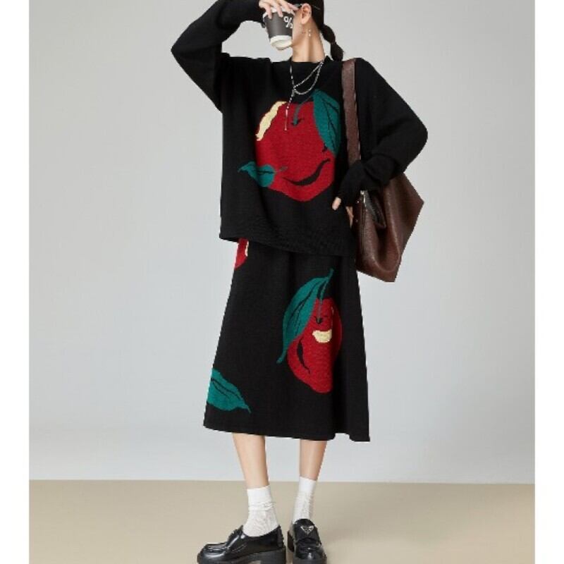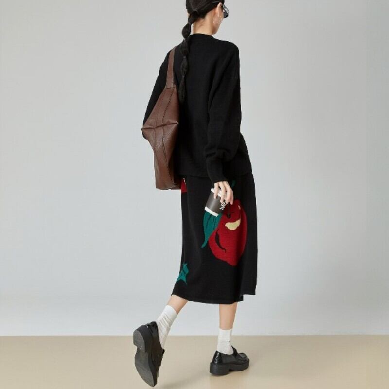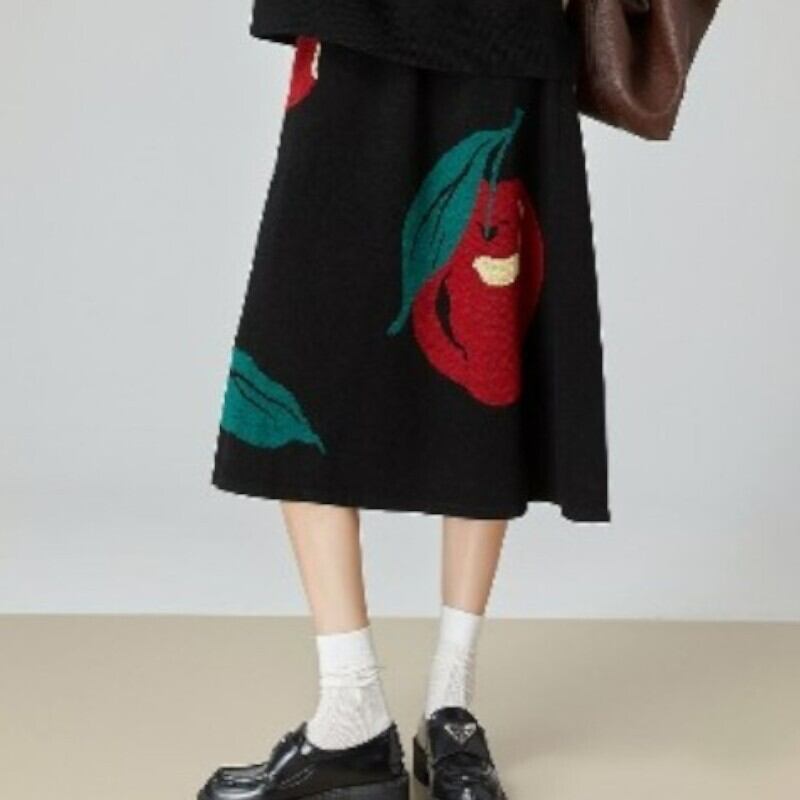 大きな口を開けてほおばりたくなるようなリンゴが描かれたスカート✨