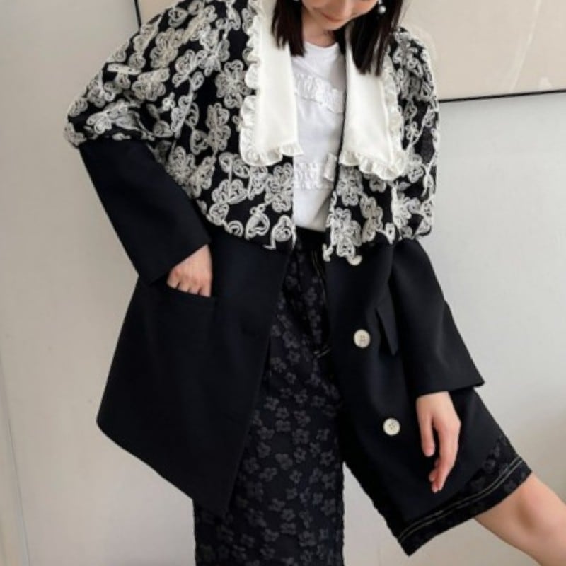 まるで夢に出てきそうな花々のおしゃれな黒ジャケット✨