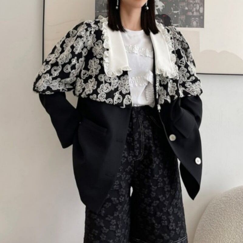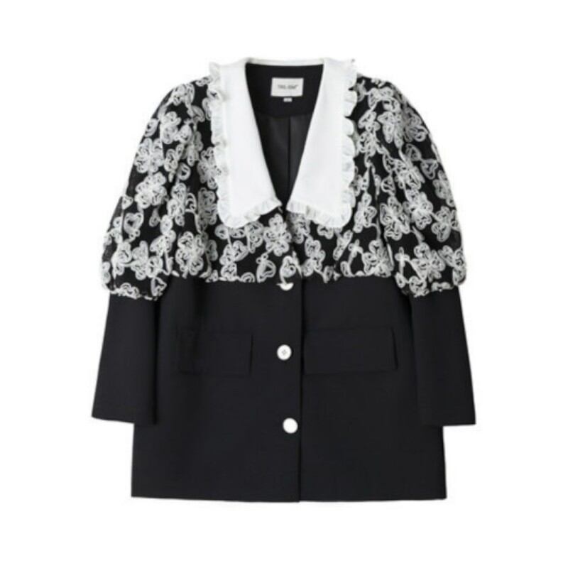 dreaming flower puff sleeve black suit jacket 0897