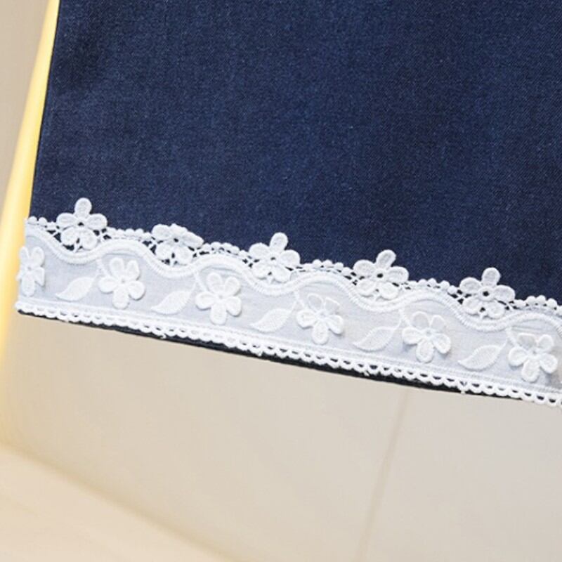 girly cute flower lace stitching wide leg denim pants 【2color】0899