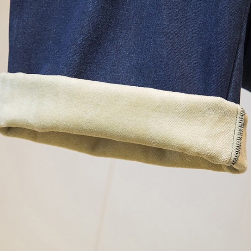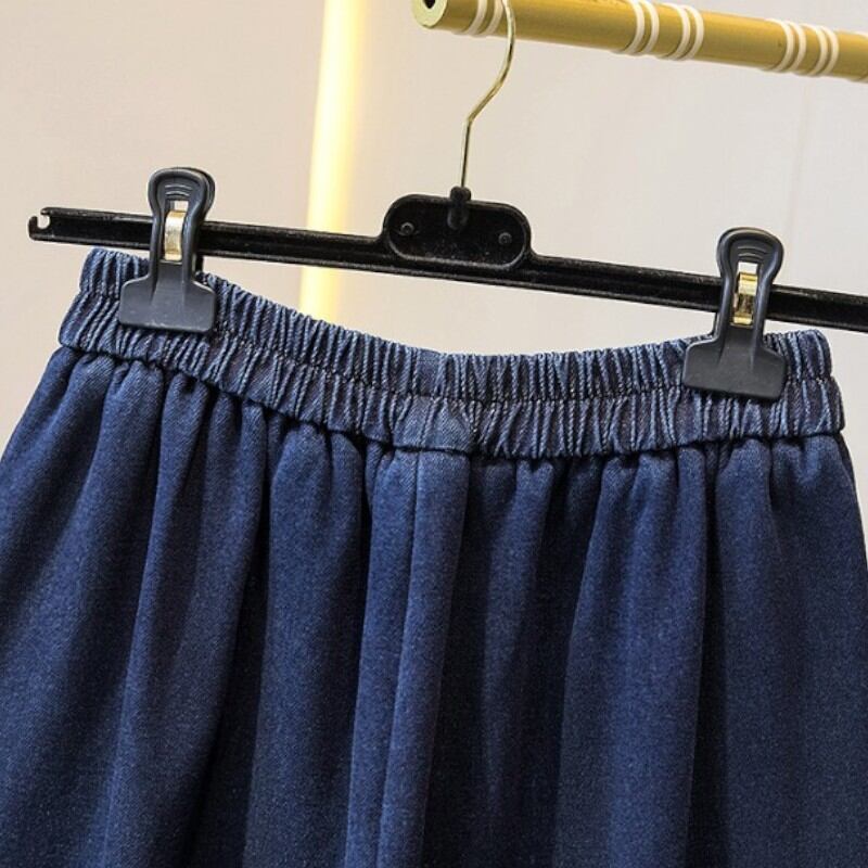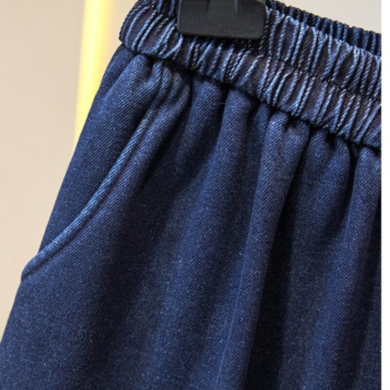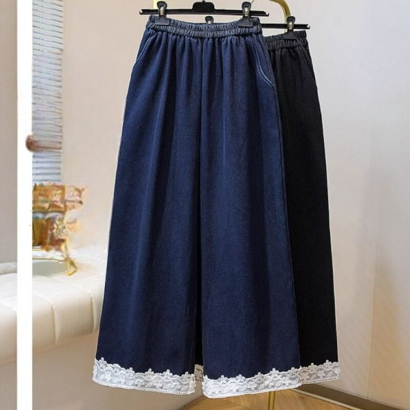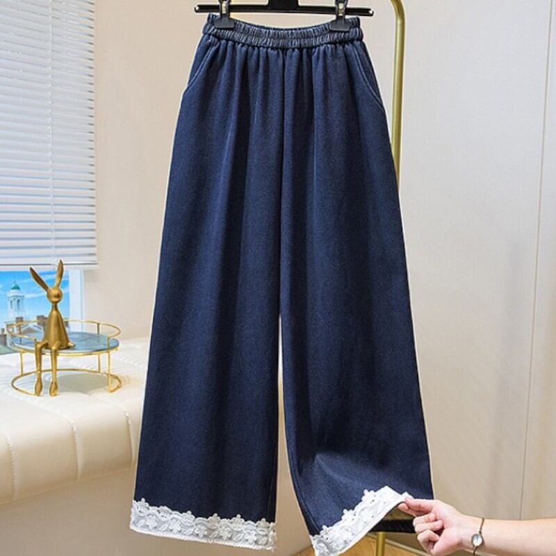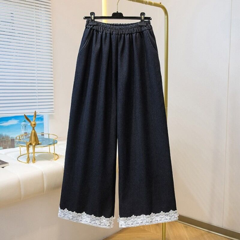 かわいらしい花柄レースが裾に施された秋冬用あったかワイドデニムパンツ✨