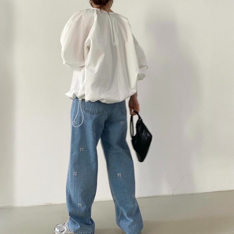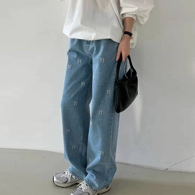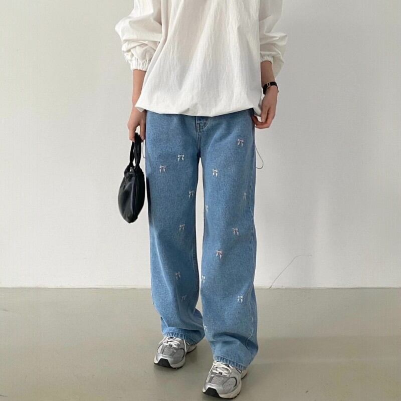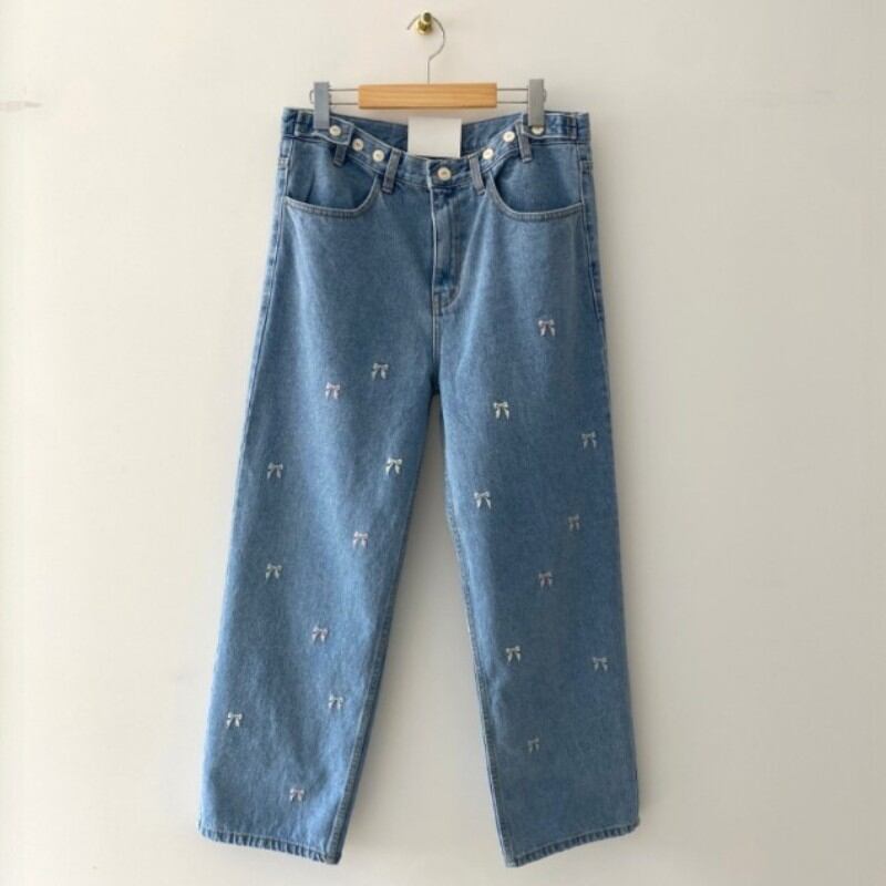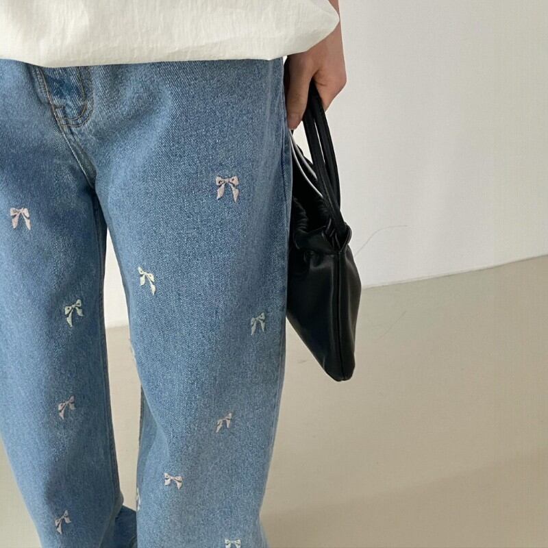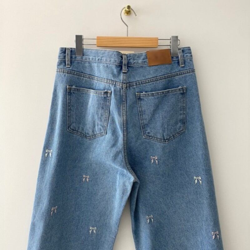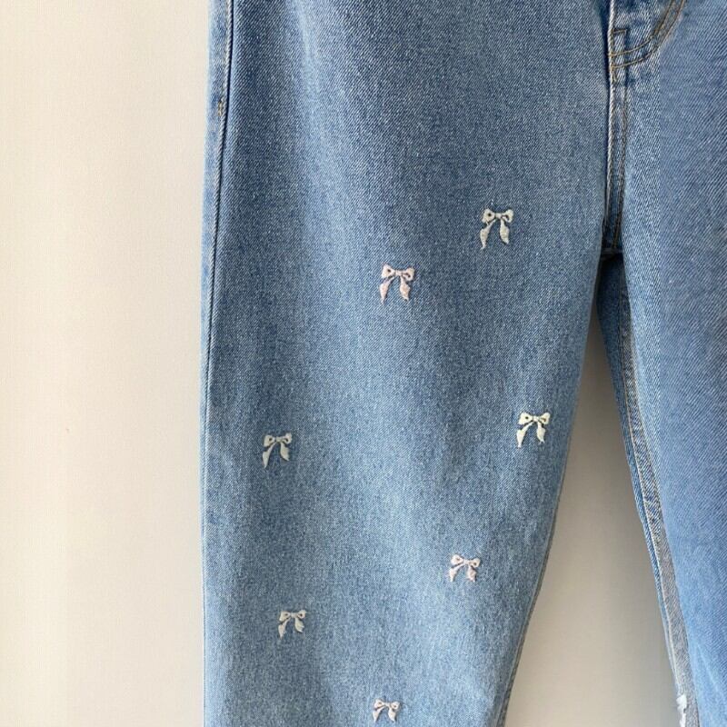 可愛らしいリボンの刺繍が散りばめられたデニムパンツ✨
