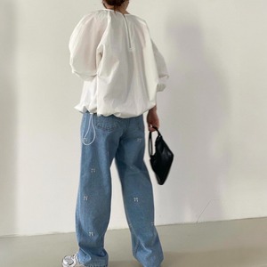 girly cute a lot of embroidered ribbon wide leg denim pants 0906