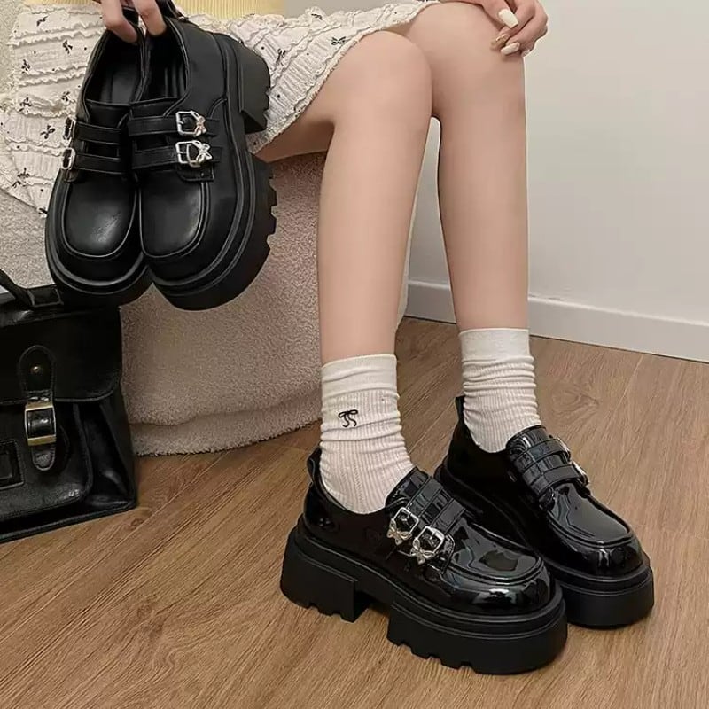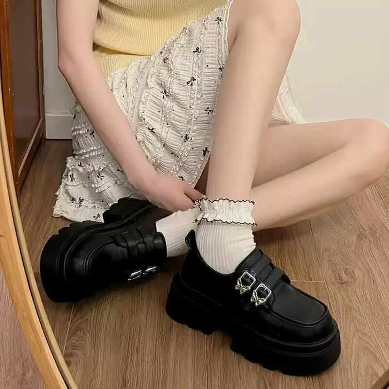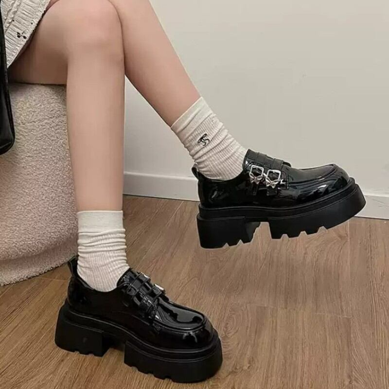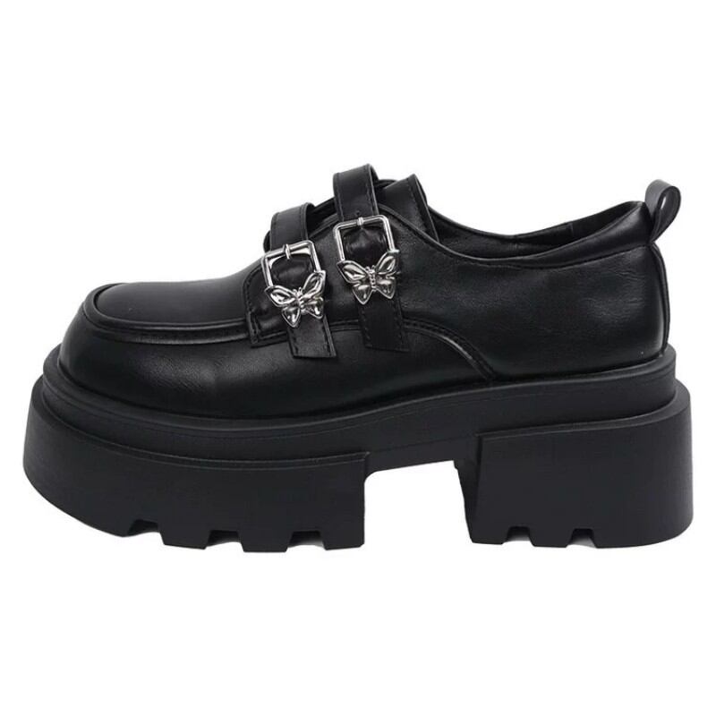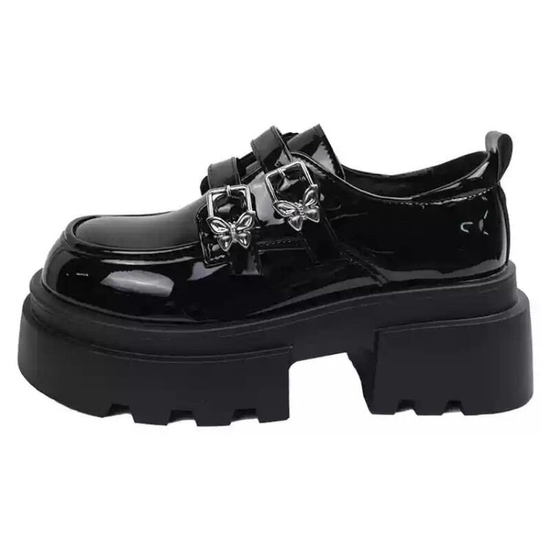 retro girly butterfly button heel loafer shoes 【2color】0917