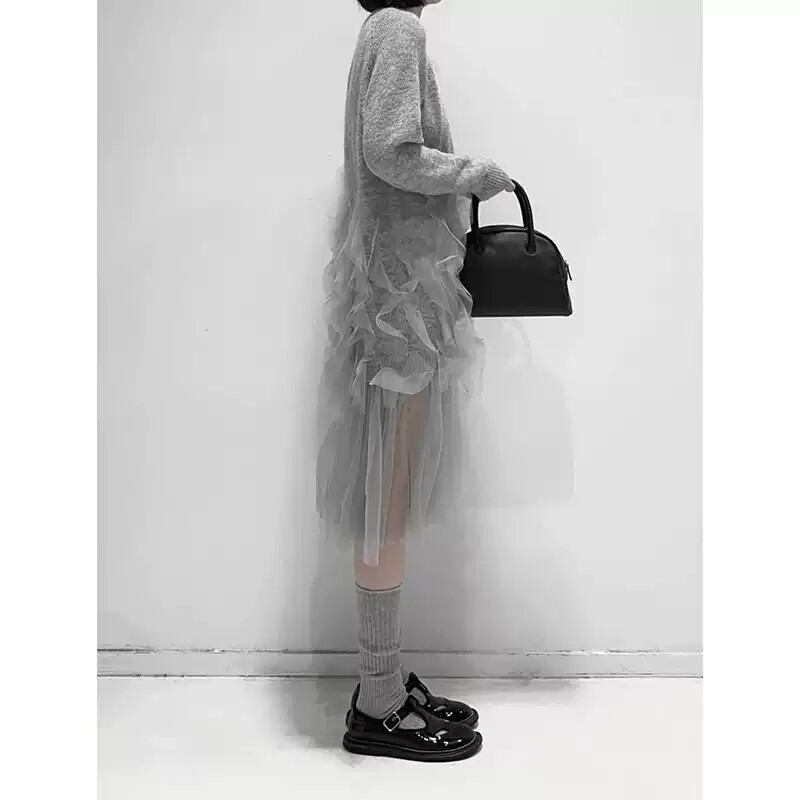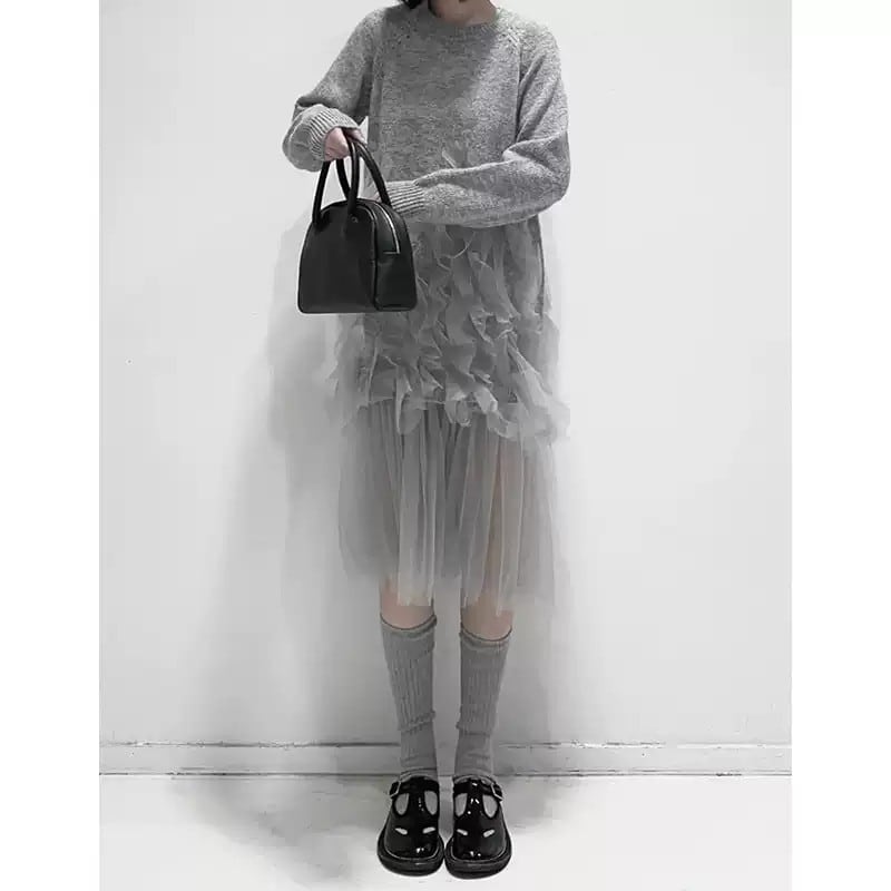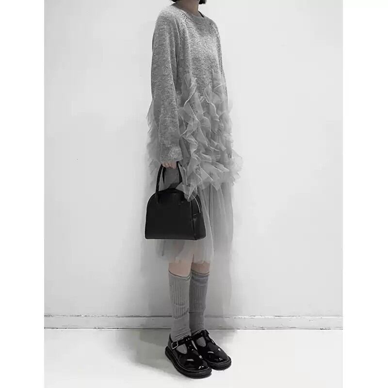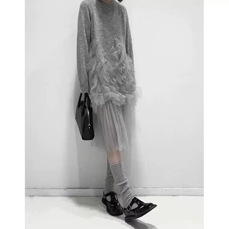 メッシュレースのフリルがおしゃれ可愛い♡ニットワンピース✨