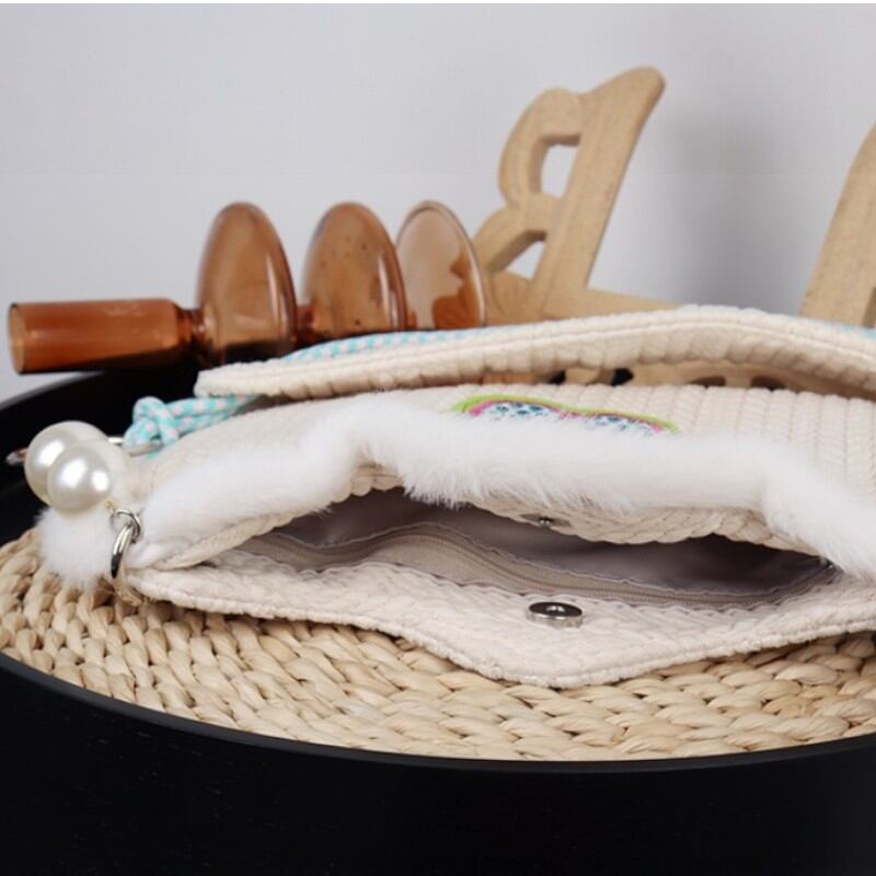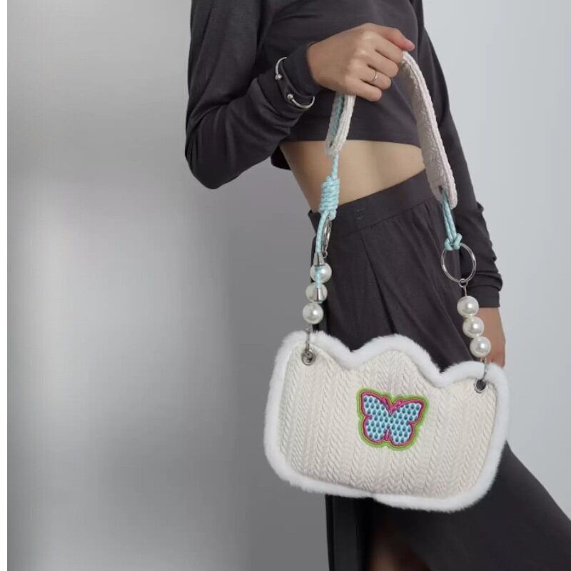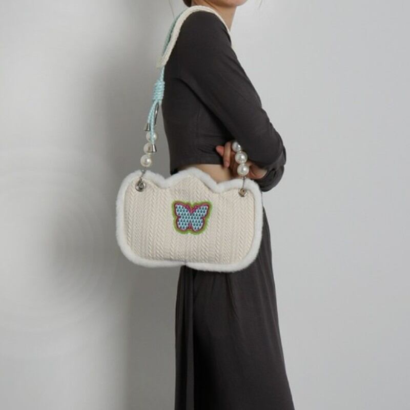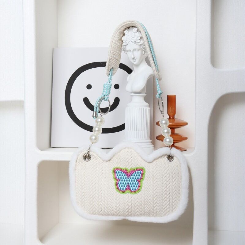 girly cute tulip flower butterfly plush woven shoulder bag 0919