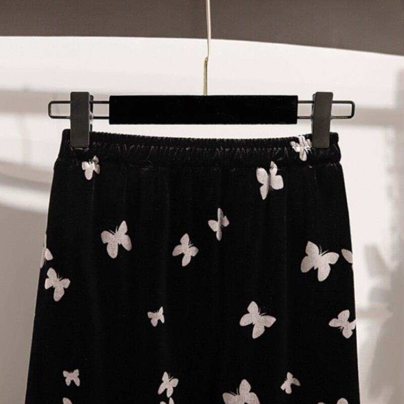 retro girly butterfly print A-line skirt plus size clothing 0920