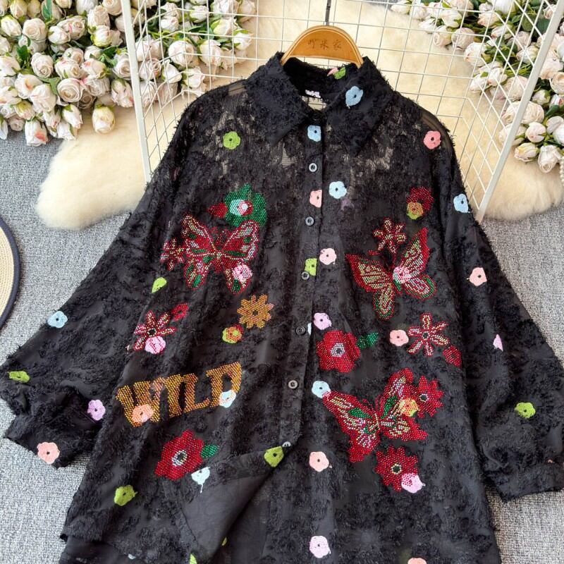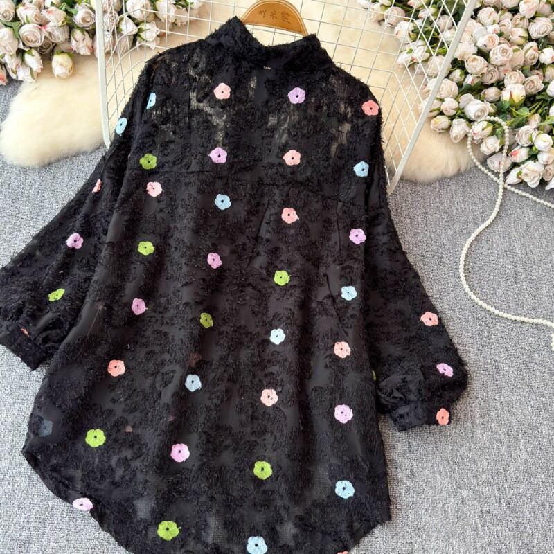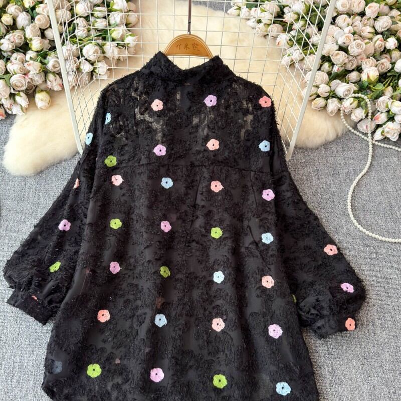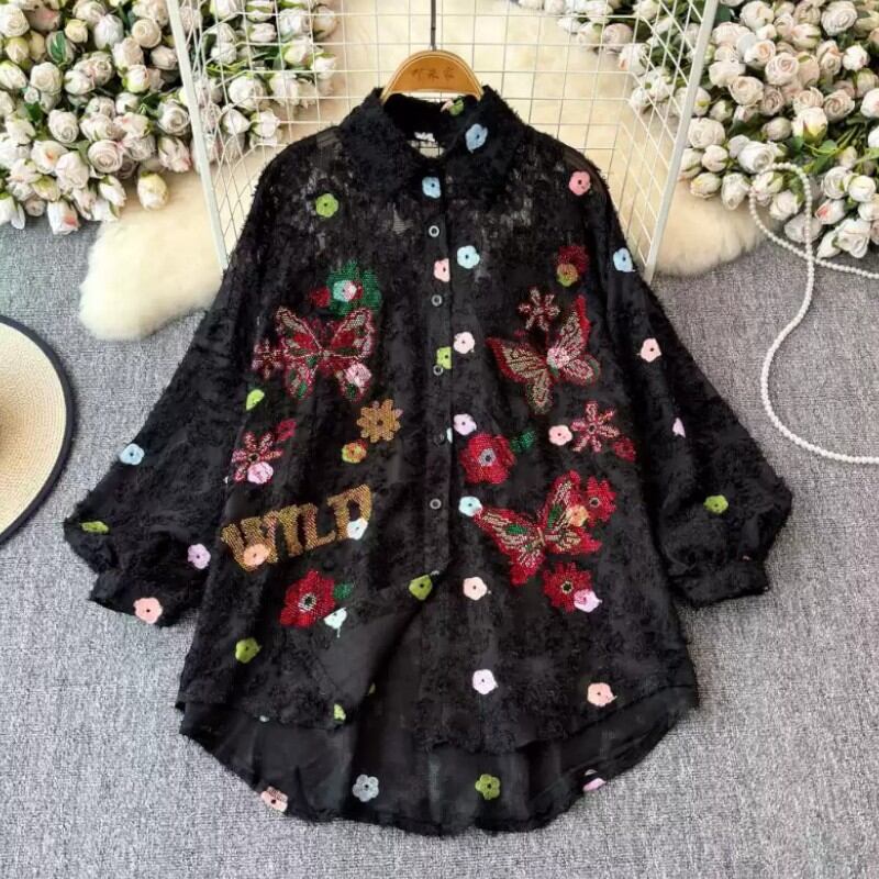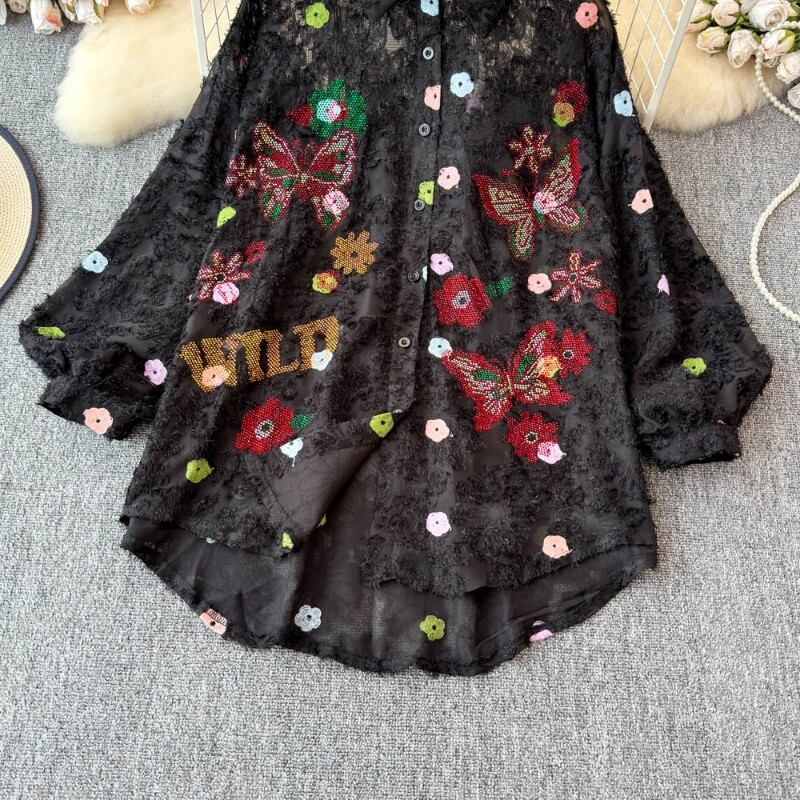 夢に出てきそうな色とりどりの花と蝶のが散りばめられたブラウス✨