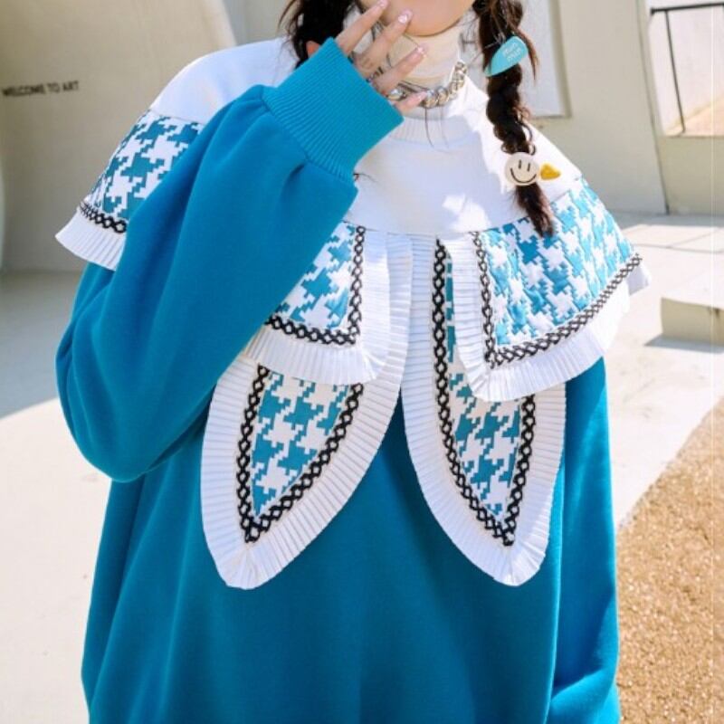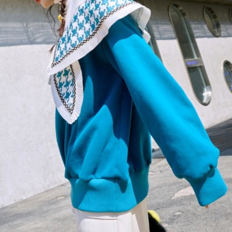 大きな襟の個性的なデザインのスウェットトップス✨