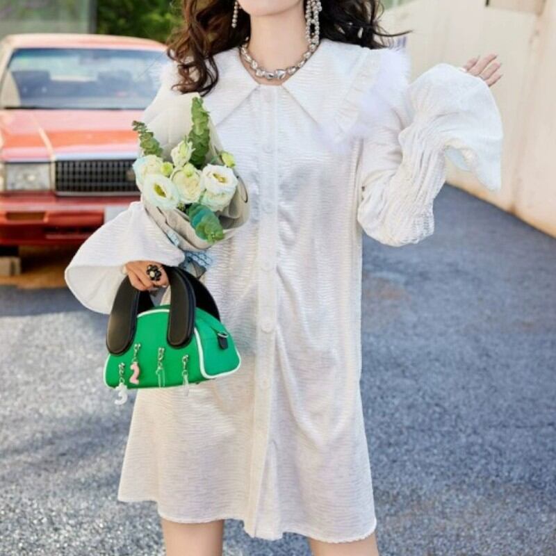 girly cute flared sleeve white shirt dress 0928