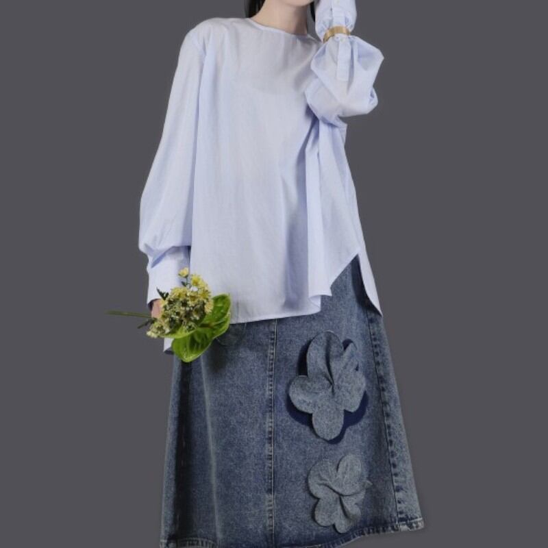 round neck design casual loose A-line comfortable shirt 【3color】0934