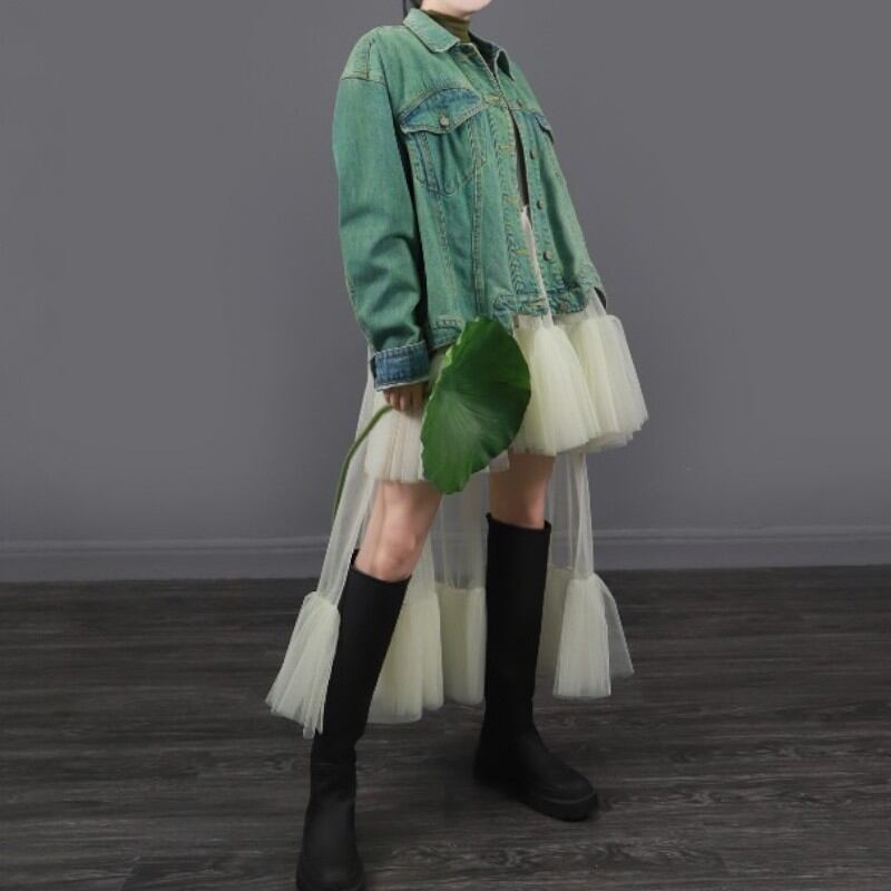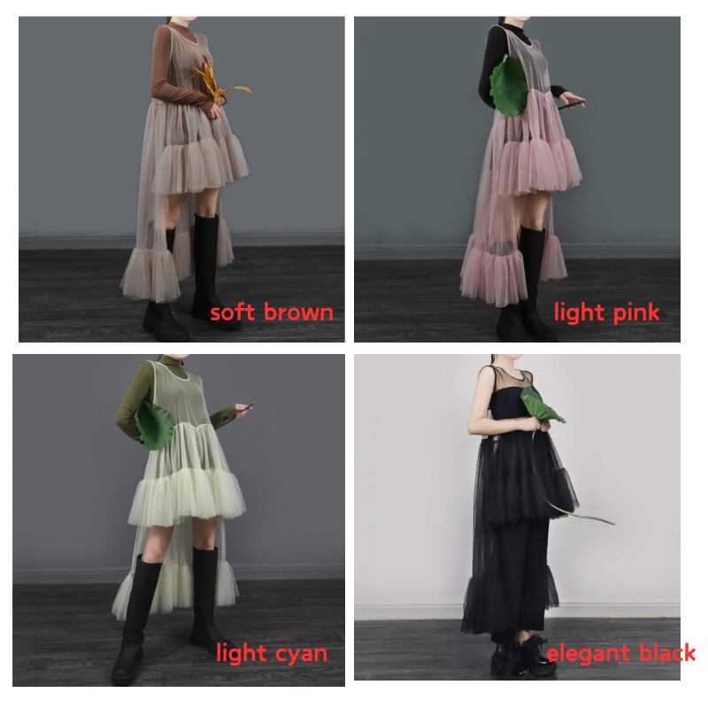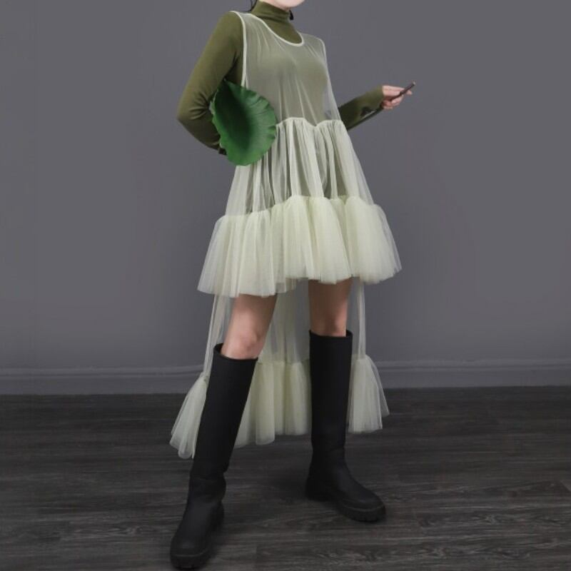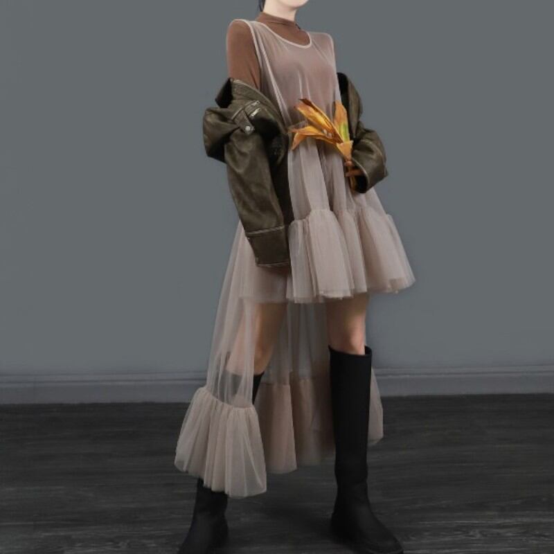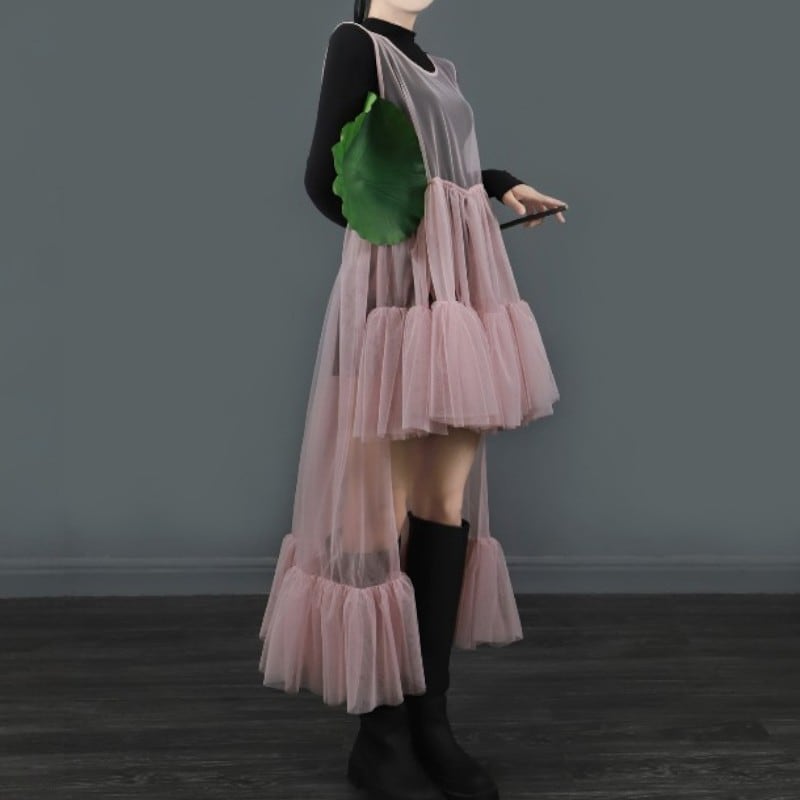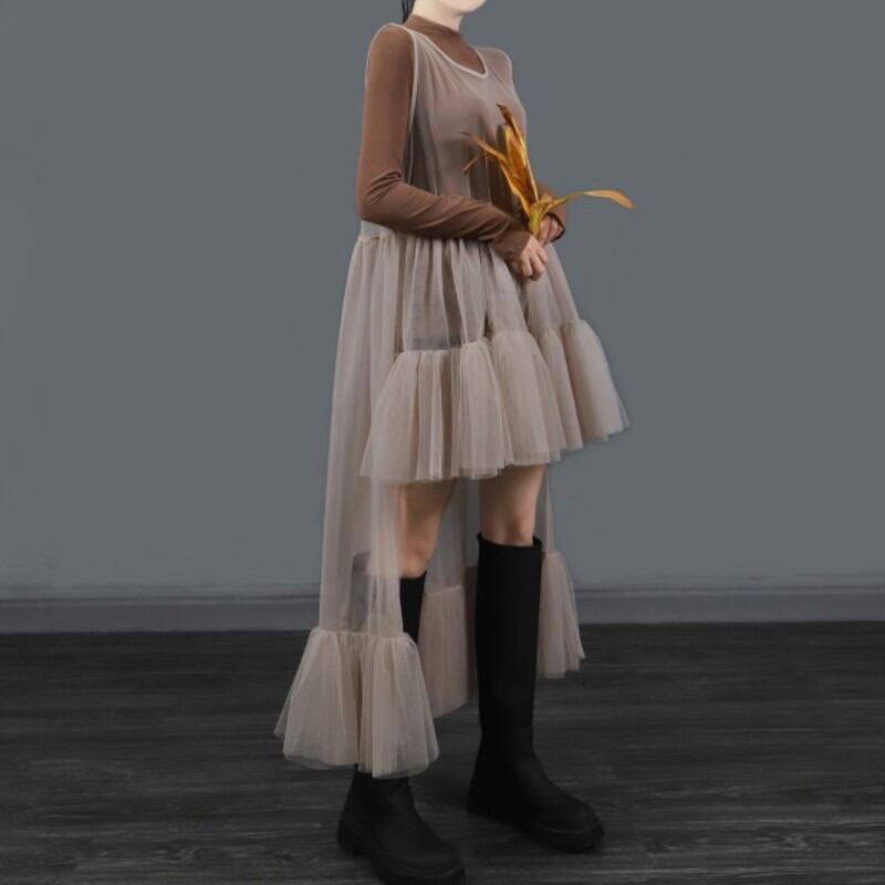 存在感抜群♪軽やかなチュール素材が揺れる、ロング丈のハイローヘムスカート。