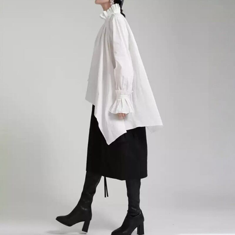 girly niche unique design asymmetry pleated white shirt 0940
