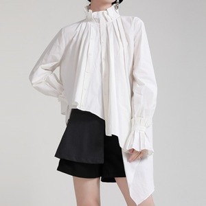スタンドカラー&アシンメトリーなヘムラインがおしゃれで個性的なブラウス✨