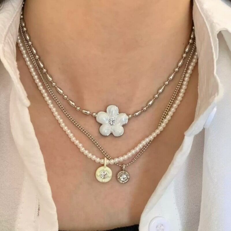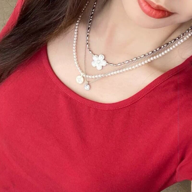 cute flower three-layer necklace 0945
