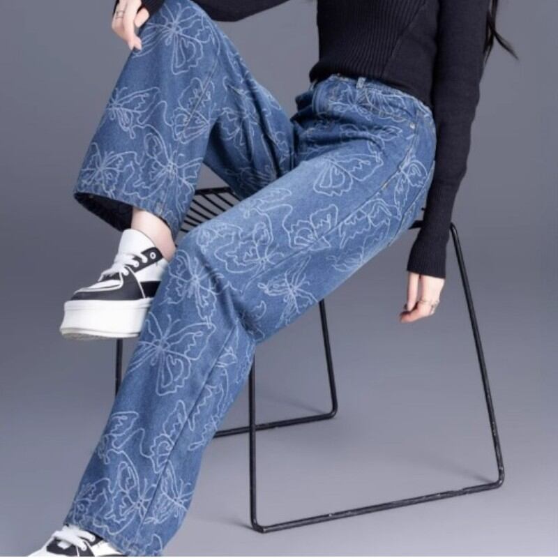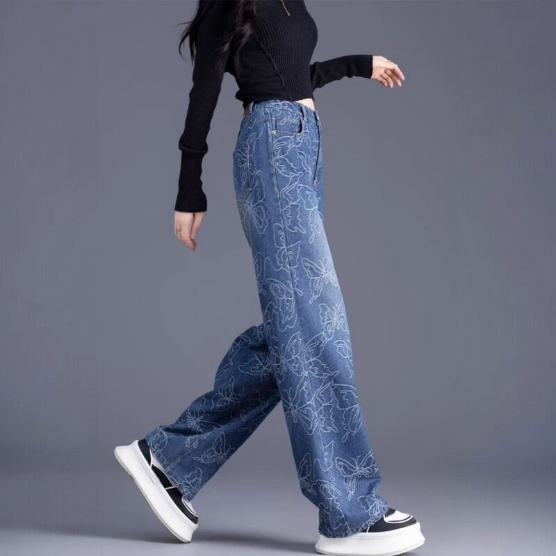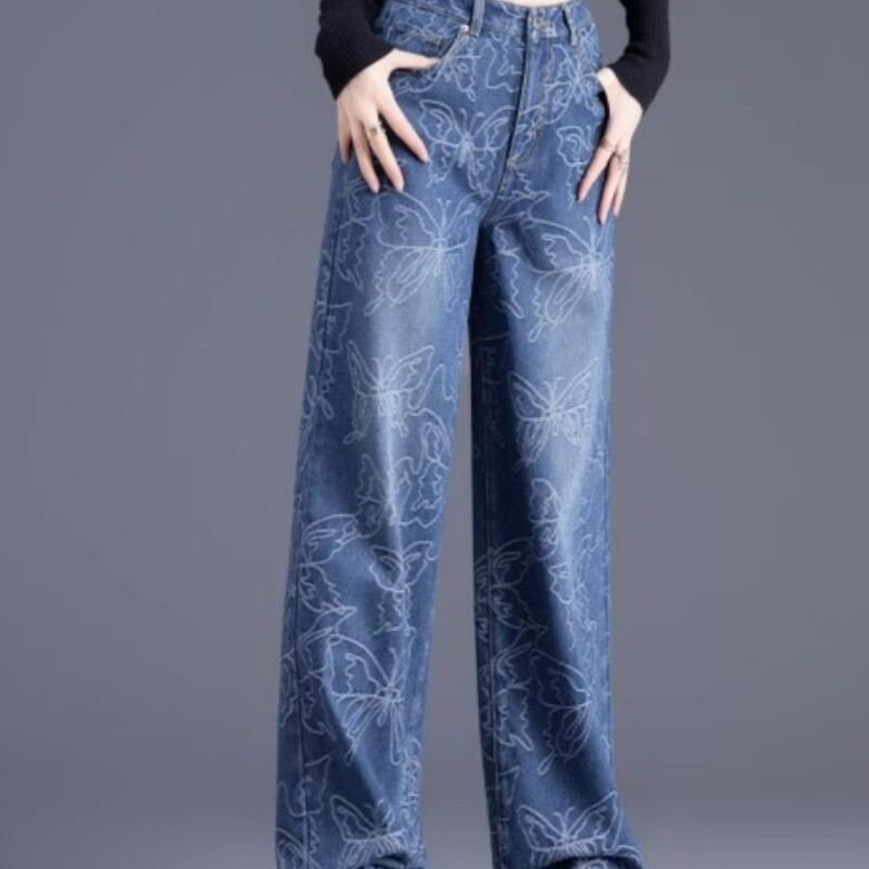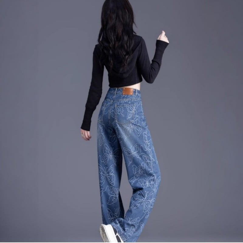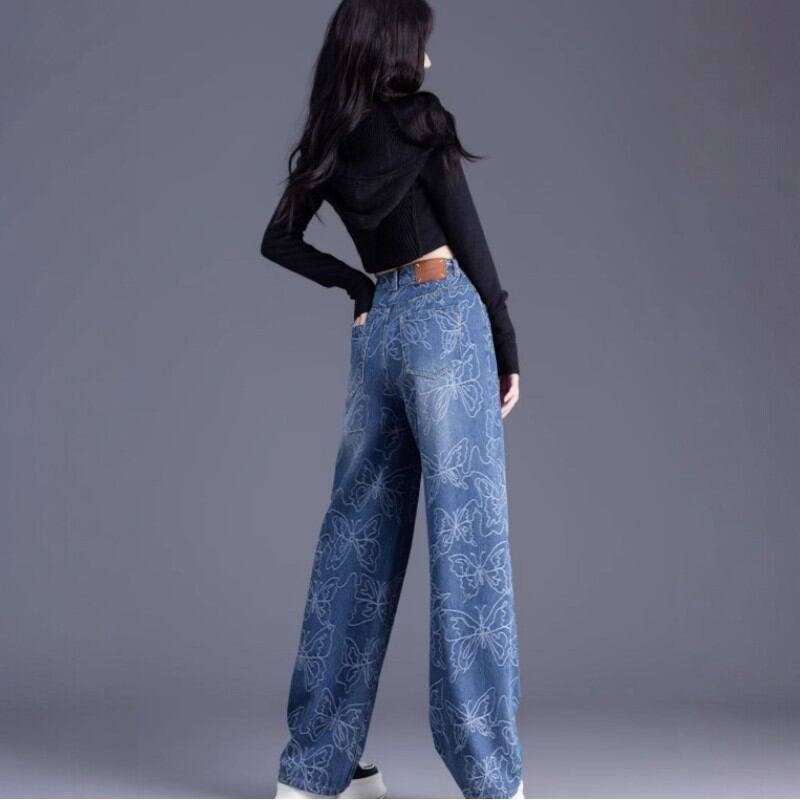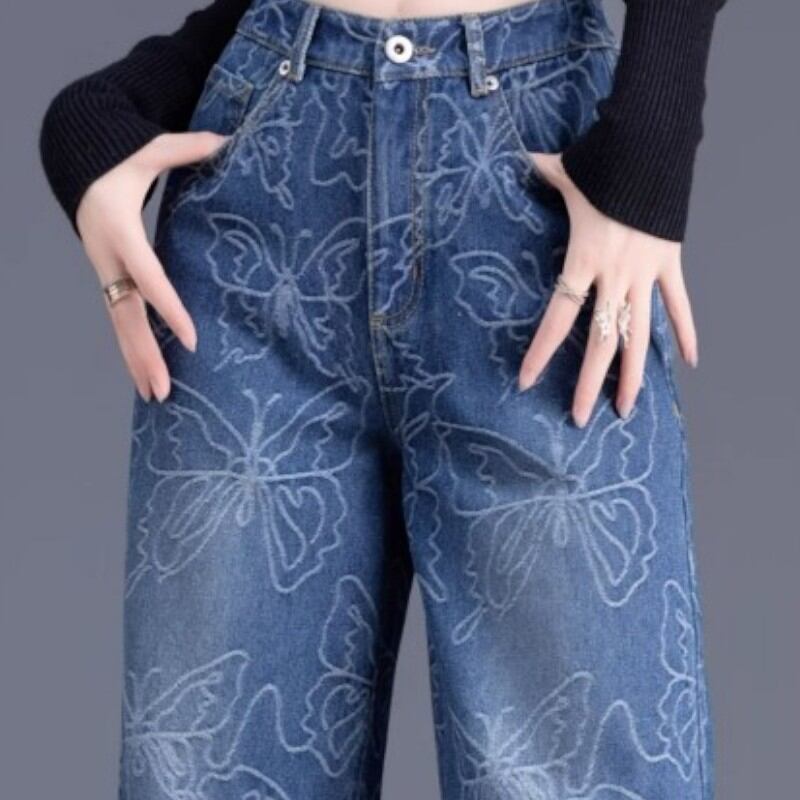 beautiful shape butterfly embroidery wide-leg denim pants 0948
