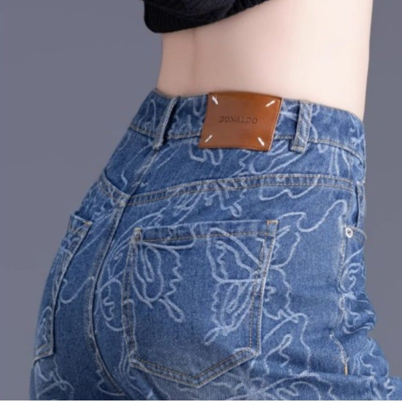 美しい形の蝶刺繍が入ったワイドデニムパンツ✨