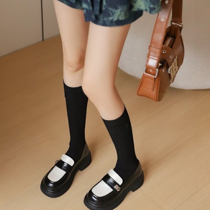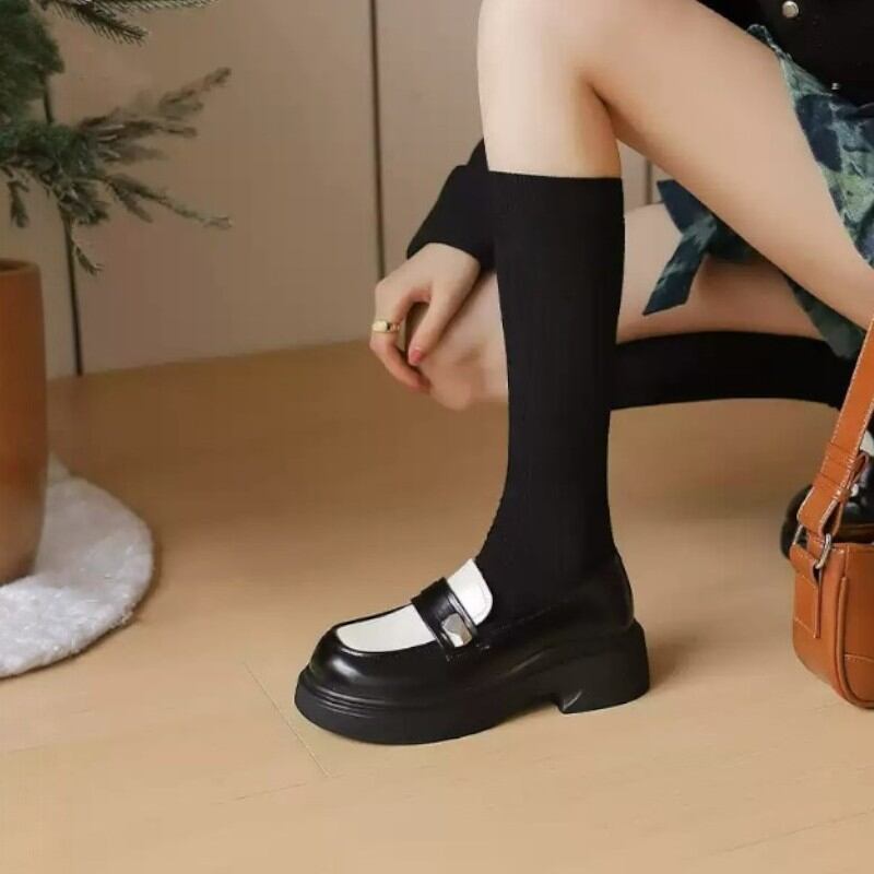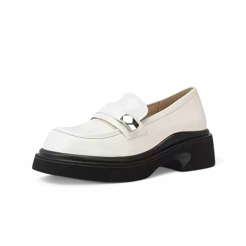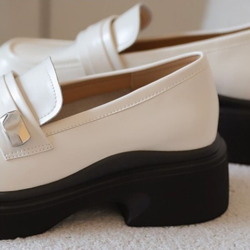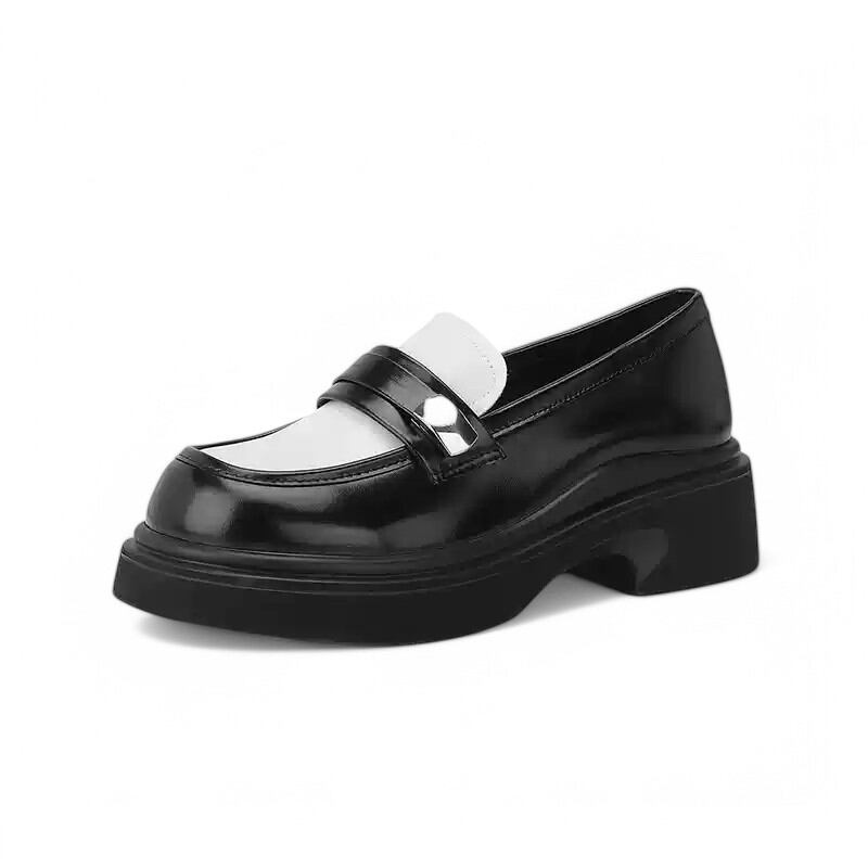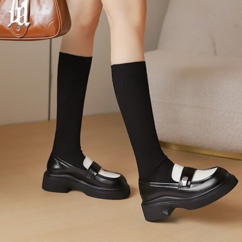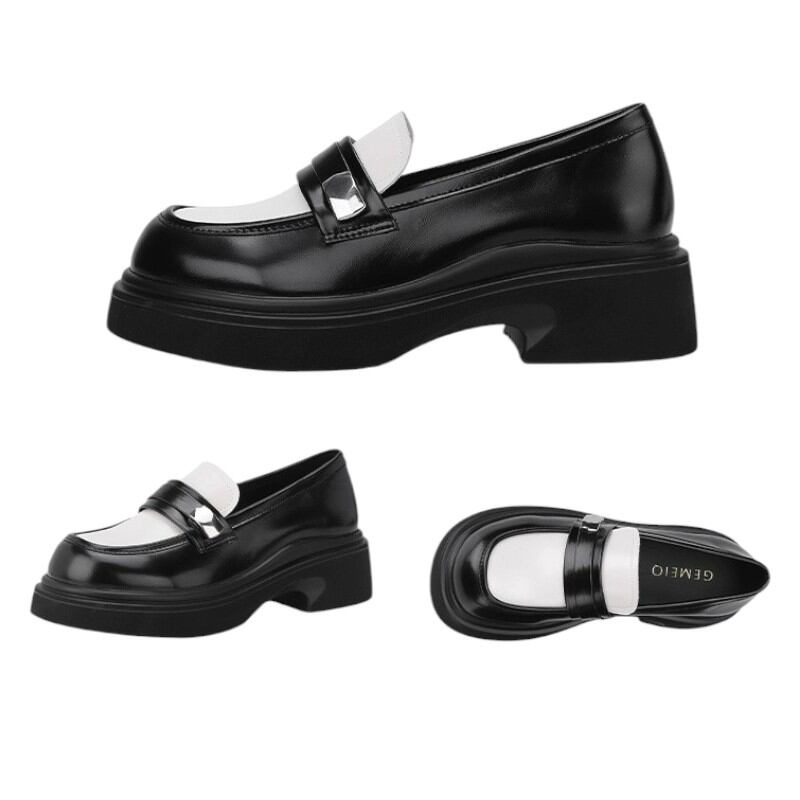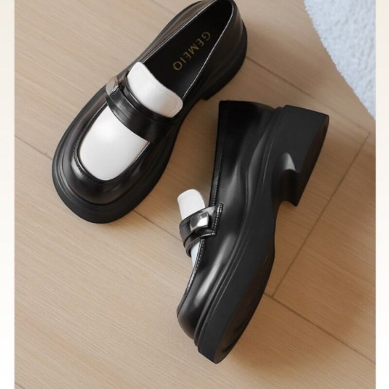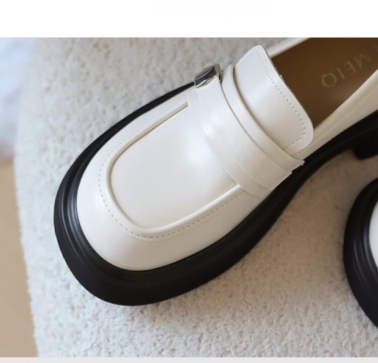 fashionable black and white thick heel loafers 【2color】0974