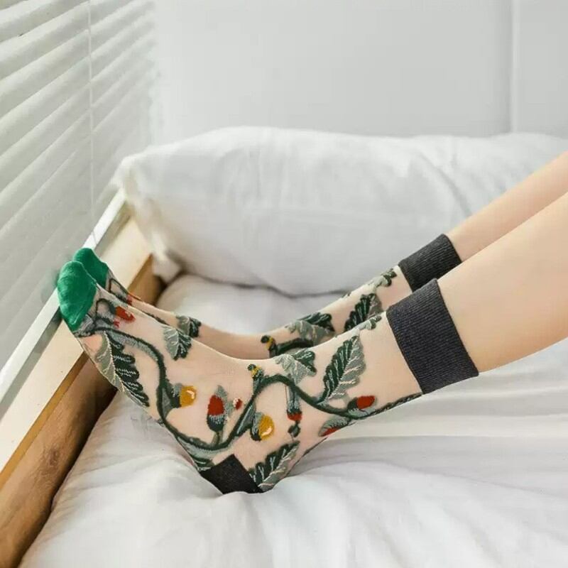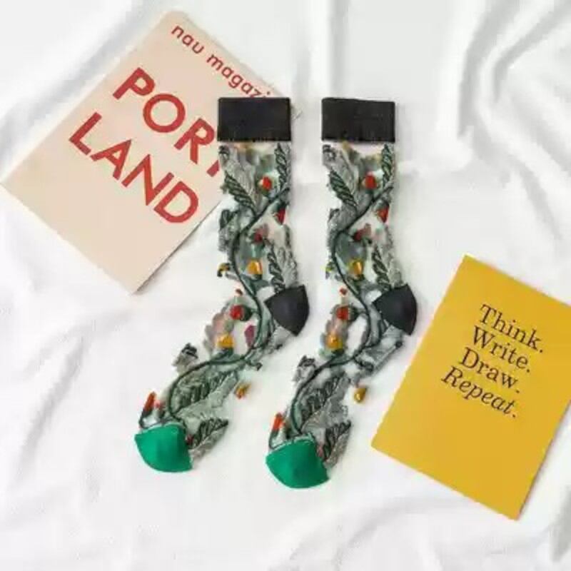 floral embroidered mesh socks (4足セット) 0979