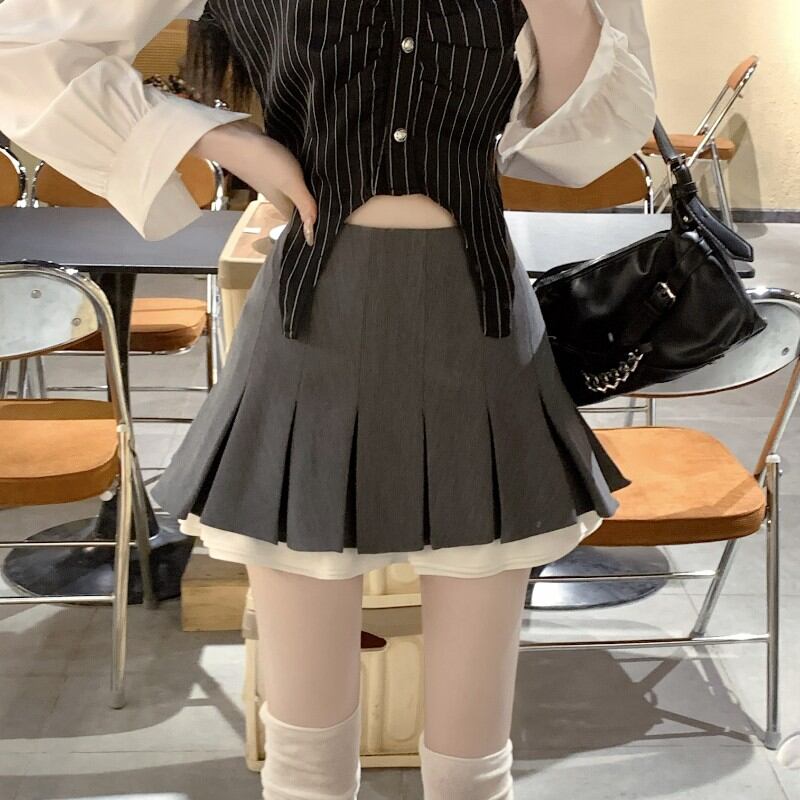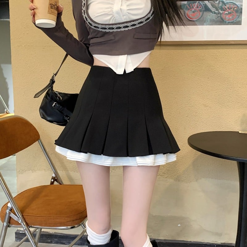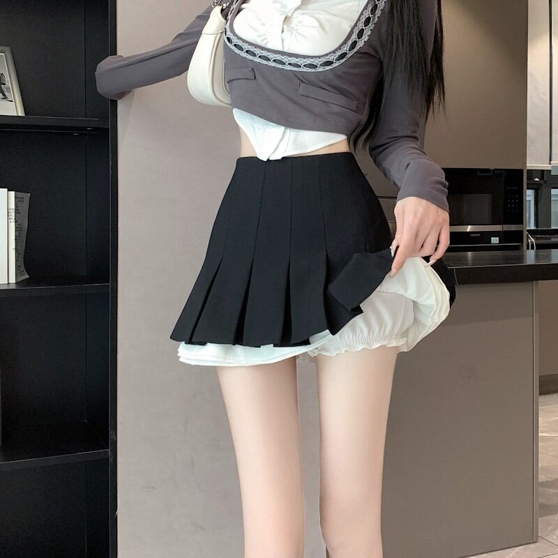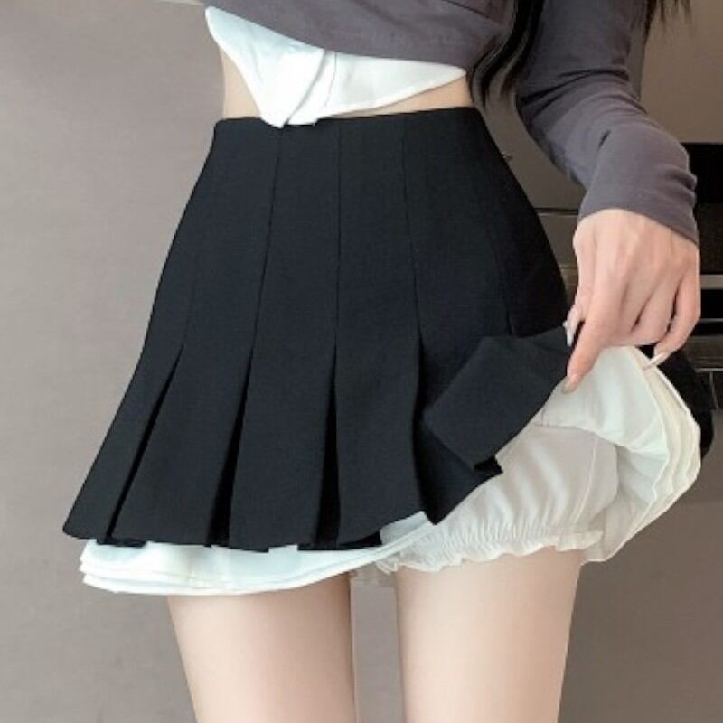 チラ見え防止可愛いふんわり白パンツ付きのキュートなプリーツミニスカート✨