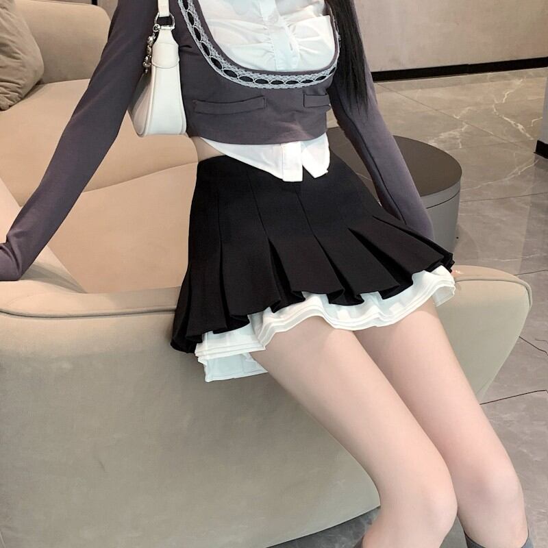 girly cute ruffled pleated skirt white pants 【2color】0982