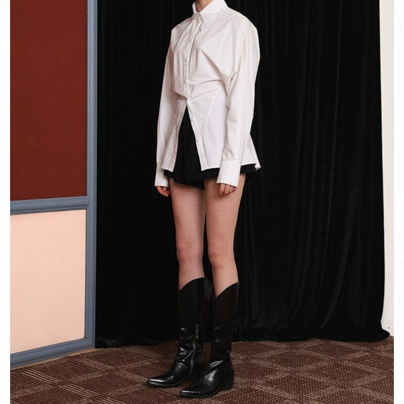 ボタンを閉めてきちんと感、開けてラフなスタイルと、様々な着こなしに対応できる一枚はもっときたいブラウス✨