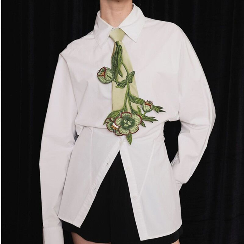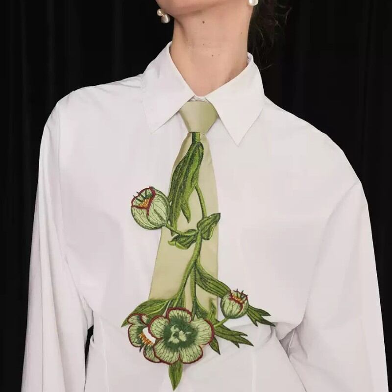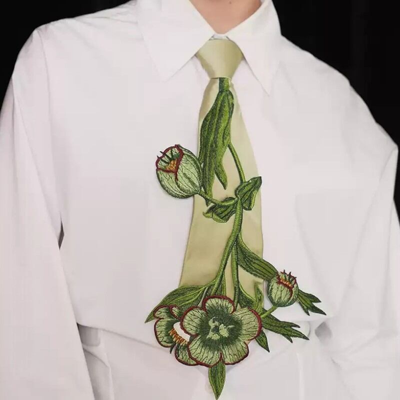girly niche design embroidery flower and plant tie 0992