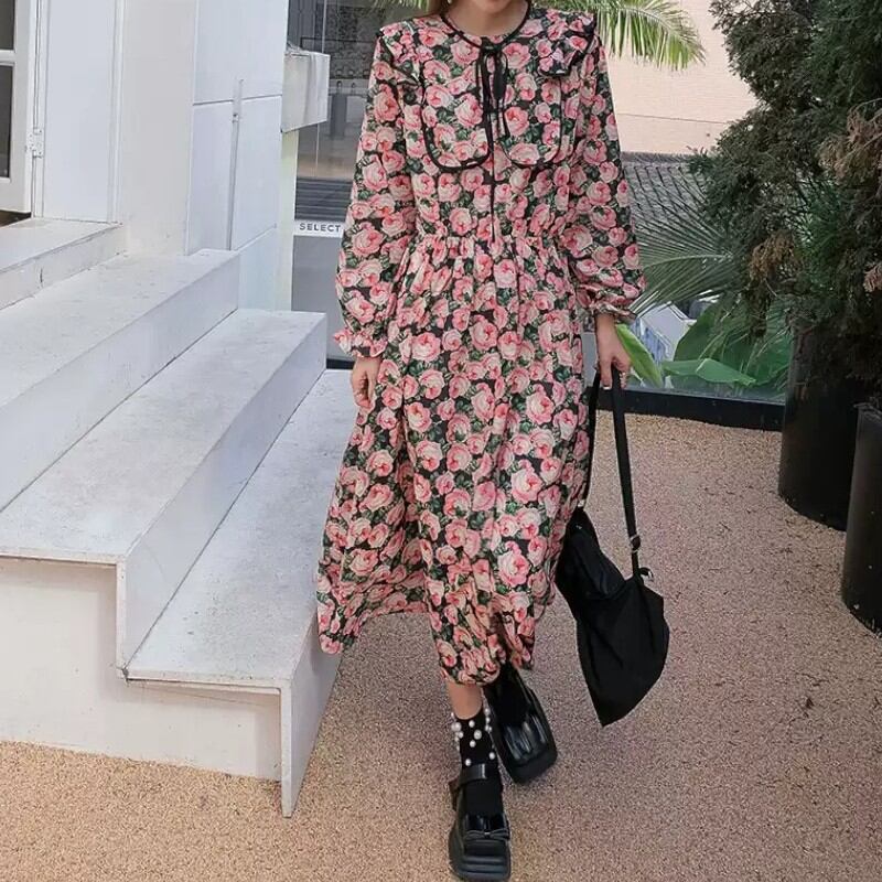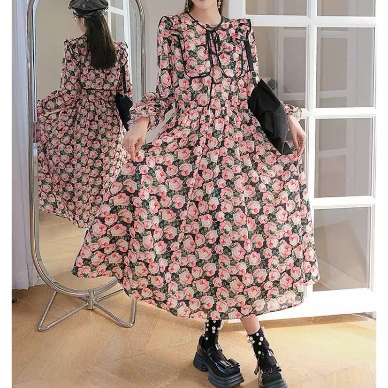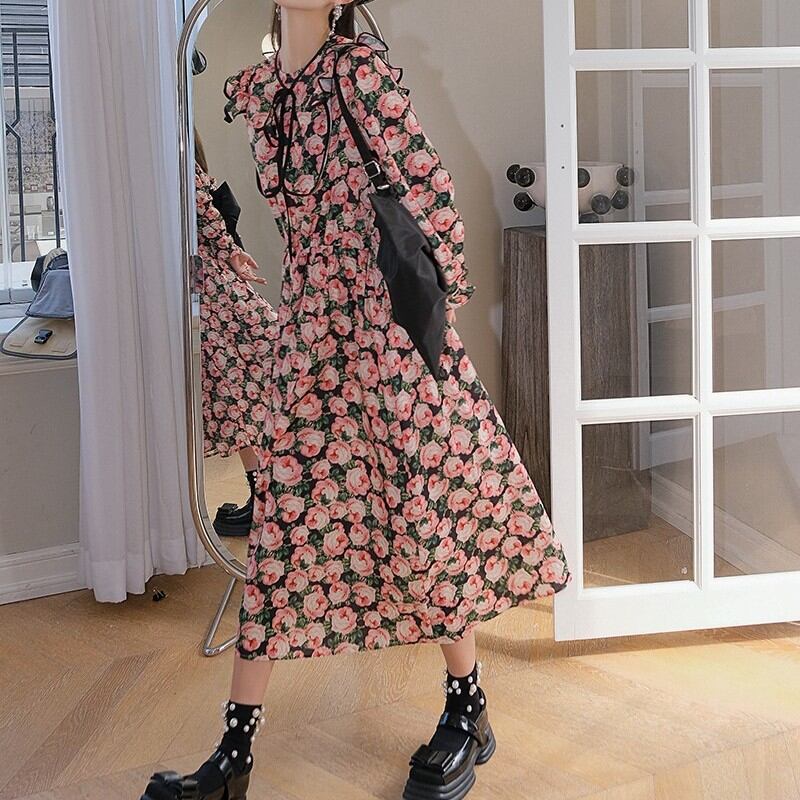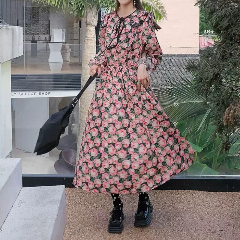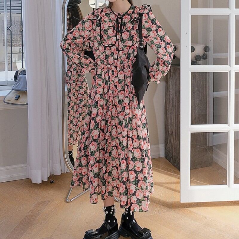ガーリーでもありエレガントでもありピンクローズ柄ワンピース✨