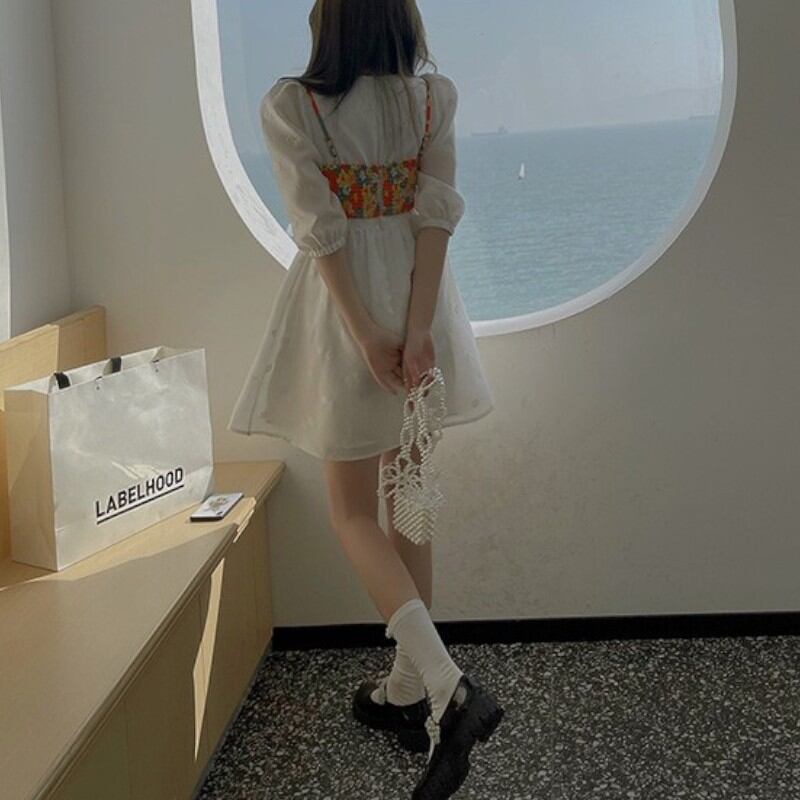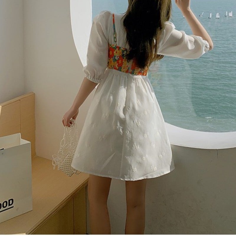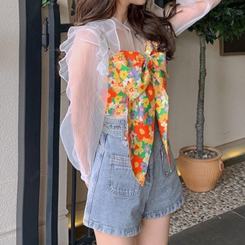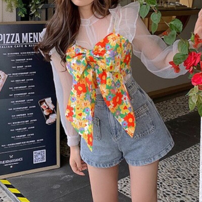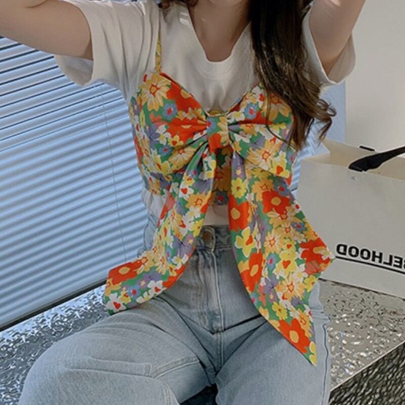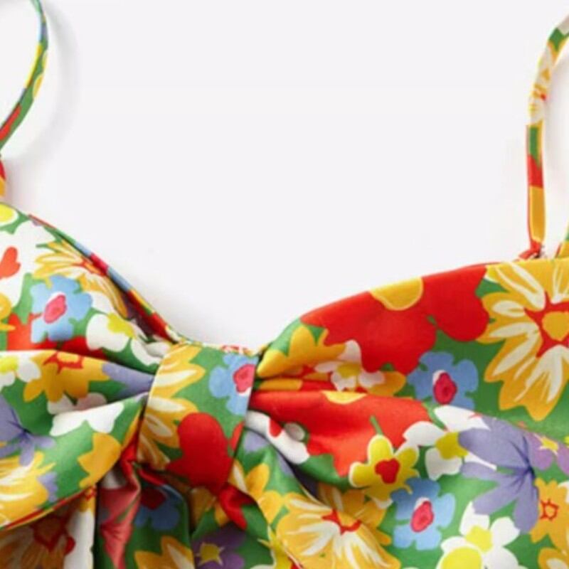 カラフル花柄リボンの肩紐付きビスチェ♪